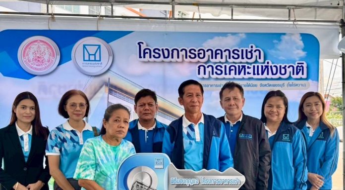 นายธนัญชัย โชติศรีลือชา รองผู้ว่าการการเคหะแห่งชาติ เป็นประธานในพิธีส่งมอบกุญแจให้กับผู้อยู่อาศัยใน “โครงการอาคารเช่าเพชรบุรีโพไร่หวาน” ซึ่งจัดขึ้นในวันแรกของการทำสัญญาเช่า