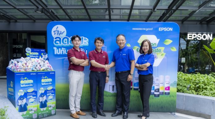 บริษัท เอปสัน (ประเทศไทย) จำกัด เดินหน้าสู่ปีที่ 5 ของโครงการ “Epson EcoWaste” โครงการรีไซเคิลขวดหมึกและตลับหมึกที่ใช้แล้วจากลูกค้าทั่วประเทศ เพื่อส่งเสริมการลดปริมาณขยะพลาสติก และสร้างความตระหนักรู้ในการรักษาสิ่งแวดล้อมอย่างยั่งยืน