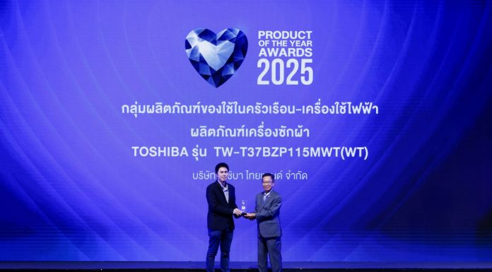 บริษัท โตชิบา ไทยแลนด์ จำกัด ตอกย้ำความเป็นผู้นำด้านเทคโนโลยีเครื่องใช้ไฟฟ้าภายในบ้าน ด้วยการคว้ารางวัล “BUSINESS+ PRODUCT OF THE YEAR AWARDS 2025” สาขา ผลิตภัณฑ์เครื่องซักผ้า จาก นิตยสาร Business+ ร่วมกับ วิทยาลัยการจัดการ มหาวิทยาลัยมหิดล (CMMU) ซึ่งมอบให้แก่แบรนด์สินค้าที่โดดเด่นทั้งด้านนวัตกรรม ความคิดสร้างสรรค์ และความรับผิดชอบต่อสังคมและสิ่งแวดล้อม
