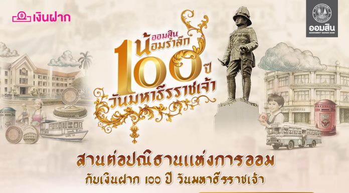 ออมสิน ออกเงินฝากส่งเสริมการออม น้อมรำลึกในพระมหากรุณาธิคุณ รัชกาลที่ 6 “เงินฝาก 100 ปี วันมหาธีรราชเจ้า” ฝาก 100 วัน ดอกเบี้ย Step up สูงสุด 25% ต่อปี จองสิทธิ์ 24 พ.ย. นี้