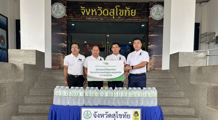 บริษัท ไทยเบฟเวอเรจ จำกัด (มหาชน) โดยผู้แทนบริษัทฯ นายวินัย สุขใจ และ นายเจริญพร กิตติวงศ์สุนทร ผู้จัดการการฝ่ายขายกลุ่มธุรกิจในเครือไทยเบฟ ส่งมอบผลิตภัณฑ์น้ำดื่มตราช้าง 1,500 ml จำนวน 200 แพ็ค ในภารกิจช่วยเหลือผู้ประสบอุทกภัย จังหวัดสุโขทัย ให้กับ นายสมลักษ์ ยกน้อยวงษ์ รองผู้ว่าราชการ จังหวัดสุโขทัย พร้อมด้วย นายพล เชื้อทหาร หัวหน้าฝ่ายป้องกันและปฏิบัติการ สำนักงานป้องกันและบรรเทาสาธารณภัย จังหวัดสุโขทัย ...