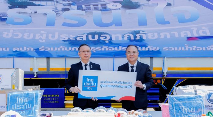 นายสวัสดิ์ นฤวรวงศ์ Senior Executive Expert บริษัท ไทยประกันชีวิต จำกัด (มหาชน) มอบผ้าห่มรักษ์โลกซึ่งผลิตจากขวดพลาสติกใช้แล้วในโครงการ Upcycling ทิ้งได้บุญ เพื่อส่งต่อความช่วยเหลือและร่วมบรรเทาทุกข์แก่ผู้ประสบอุทกภัยในพื้นที่ภาคใต้ ผ่านโครงการ “คปภ. ร่วมกับภาคธุรกิจประกันภัย รวมใจเพื่อพี่น้องชาวใต้” โดยมี นายชูฉัตร ประมูลผล เลขาธิการ สำนักงานคณะกรรมการกำกับและส่งเสริมการประกอบธุรกิจประกันภัย (คปภ.) รับมอบ ณ สำนักงาน คปภ. ถนนรัชดาภิเษกนับตั้งแต่เกิดสถานการณ์อุทกภัยในพื้นที่ภาคใต้ ไทยประกันชีวิตร่วมส่งมอบการดูแลผู้เอาประกันภัยและผู้ได้รับผลกระทบอย่างต่อเนื่อง โดยออกมาตรการผ่อนผันการชำระเบี้ยประกันภัย และมาตรการอื่นๆ เพื่อบรรเทาความเดือดร้อนให้กับผู้เอาประกันภัยของบริษัทฯ พร้อมทั้งได้ส่งมอบความช่วยเหลือเร่งด่วน อาทิ ส่งมอบผ้าห่มจำนวน 300 ผืน และเครื่องอุปโภค-บริโภค ผ่านกรมกิจการพลเรือนทหารเรือ, มอบเงินสมทบจัดทำโรงครัวบ้านควนลัง อ.หาดใหญ่ เพื่อปรุงอาหารอาหารแจกจ่ายแก่ผู้ประสบภัย, ส่งมอบสิ่งของที่จำเป็นผ่านศูนย์อำนวยการช่วยเหลือเครือข่ายวายุภักษ์ กระทรวงการคลัง ภายใต้โครงการ “ธารน้ำใจ ช่วยผู้ประสบอุทกภัยภาคใต้”การให้ความช่วยเหลือกรณีภัยพิบัติและสถานการณ์ฉุกเฉิน เป็นไปตามเจตนารมณ์ด้านความรับผิดชอบต่อสังคมของไทยประกันชีวิต ที่สะท้อนถึงความมุ่งมั่นและพร้อมเคียงข้างดูแลคนไทยในทุกวิกฤต