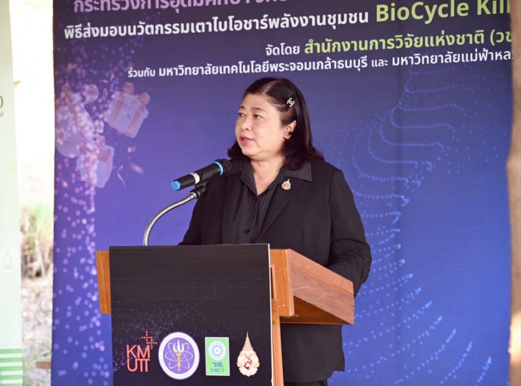 รองศาสตราจารย์ ดร.อนรรฆ ขันธะชวนะ หัวหน้าโครงการ กล่าวว่า นวัตกรรมเตาไบโอชาร์พลังงานชุมชน BioCycle Kiln เป็นการต่อยอดองค์ความรู้ด้านวิทยาศาสตร์และเทคโนโลยีเพื่อนำมาใช้จัดการเศษวัสดุเหลือใช้ทางการเกษตร อาทิ ฟางข้าวและชีวมวล สำหรับปรับปรุงคุณภาพดินและเพิ่มประสิทธิภาพการเพาะปลูก โดยนวัตกรรมดังกล่าวช่วยลดการเผาในที่โล่งซึ่งเป็นสาเหตุสำคัญของปัญหาฝุ่นควันและผลกระทบต่อสุขภาพของประชาชนในวงกว้าง โดยโครงการตั้งเป้าลดจำนวนจุดความร้อนในพื้นที่เป้าหมาย 9 จังหวัด และมุ่งลดระดับมลพิษทางอากาศให้ได้มากกว่าร้อยละ 30 ผ่านการประยุกต์ใช้เทคโนโลยีที่เหมาะสมกับบริบทของชุมชน