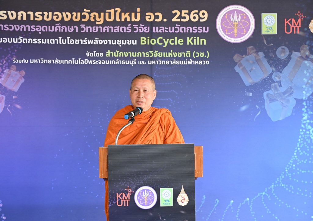 วันที่ 9 กุมภาพันธ์ 2569 สำนักงานการวิจัยแห่งชาติ(วช.) กระทรวงการอุดมศึกษา วิทยาศาสตร์ วิจัยและนวัตกรรม จัด “พิธีส่งมอบนวัตกรรมเตาไบโอชาร์พลังงานชุมชน BioCycle Kiln” ภายใต้โครงการของขวัญปีใหม่ อว. 2569 โดยมี ดร.วิภารัตน์ ดีอ่อง ผู้อำนวยการสำนักงานการวิจัยแห่งชาติ เป็นประธาน พร้อมด้วย รองศาสตราจารย์ ดร.อนรรฆ ขันธะชวนะ หัวหน้าโครงการ กล่าวรายงาน, นายสามารถ อินทปัญญา นายอำเภอลอง กล่าวต้อนรับ พระครูสิริสุเมธากร เจ้าคณะอำเภอลอง เจ้าอาวาสวัดบ้านปง จ.แพร่ และคณะผู้ทรงคุณวุฒิ วช. เข้าร่วมพิธี ณ กลุ่มชุมชนบ้านปง ต.ต้าผามอก อ.ลอง จังหวัดแพร่