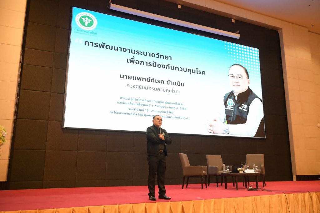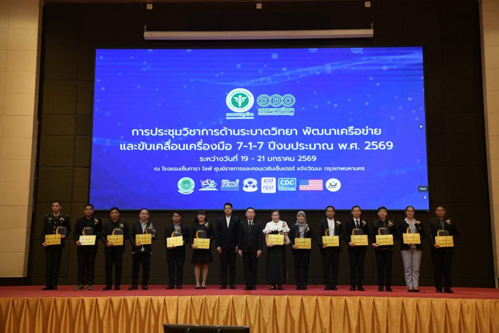กรมควบคุมโรค โดย กองระบาดวิทยา จัดการประชุมวิชาการด้านระบาดวิทยา ปีงบประมาณ พ.ศ. 2569 ระดมเครือข่ายนักระบาดวิทยาจากทั่วประเทศ ร่วมแลกเปลี่ยนองค์ความรู้ เสริมศักยภาพระบบเฝ้าระวังและตอบโต้ภาวะฉุกเฉินด้านสาธารณสุข พร้อมขับเคลื่อนการใช้เครื่องมือ 7-1-7 อย่างเป็นรูปธรรม ภายใต้แนวคิด “เครือข่ายก้าวหน้า ระบาดวิทยาก้าวไกล ระบบสุขภาพไทยยั่งยืน” และจัดพิธีมอบรางวัล “คนดี ศรีระบาด ระดับประเทศ ประจำปี 2568” เพื่อเชิดชูเกียรตินักระบาดวิทยาด่านหน้าผู้ทุ่มเทเสียสละและเป็นแบบอย่างที่ดีในการทำงานเพื่อคุ้มครองสุขภาพประชาชน