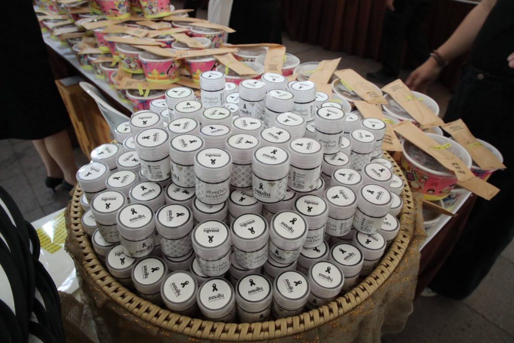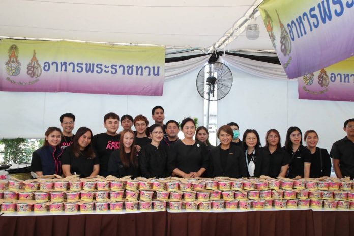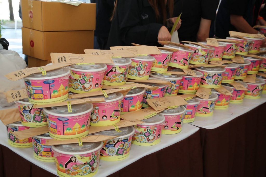 นางสมจิตร์ ทองจุ้น ผู้ช่วยผู้อำนวยการธนาคารออมสิน สายงานกิจการสาขา 1 และนางปรีดาพร ป้องกันภัย รักษาการผู้อำนวยการธนาคารออมสินภาค 3 พร้อมคณะ เป็นผู้แทนธนาคารออมสินร่วมนำอาหารปรุงสุกพร้อมรับประทานและน้ำดื่ม รวมกว่า 500 ชุด