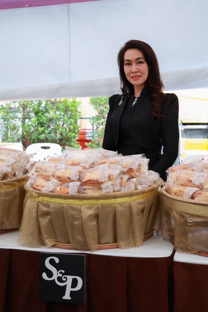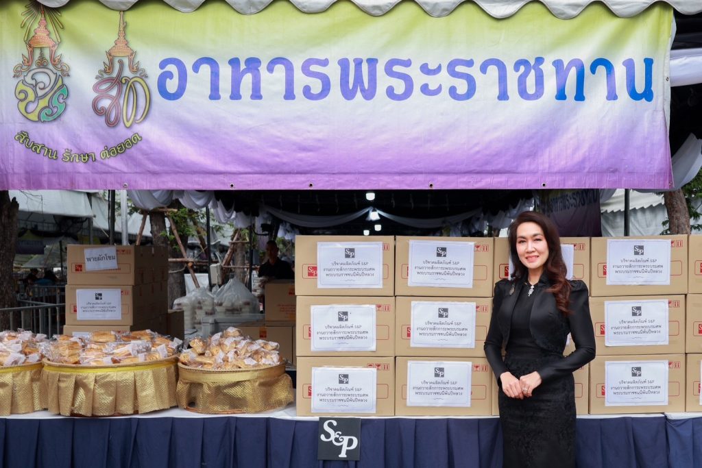 คุณมณีสุดา ศิลาอ่อน ประธานเจ้าหน้าที่สำนักพัฒนาความยั่งยืนและสื่อสารองค์กร บริษัท เอส แอนด์ พี ซินดิเคท จำกัด (มหาชน) มอบผลิตภัณฑ์ S&P จำนวน 8,980 ชิ้น เพื่อสนับสนุนและให้บริการแก่ประชาชนที่เดินทางเข้าเฝ้าฯ กราบถวายบังคมพระบรมศพ สมเด็จพระนางเจ้าสิริกิติ์ พระบรมราชินีนาถ พระบรมราชชนนีพันปีหลวง ณ พระที่นั่งดุสิตมหาปราสาท