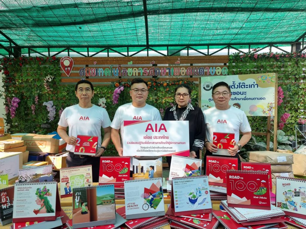 เอไอเอ ประเทศไทย นำโดย คุณอีริค ลู ประธานเจ้าหน้าที่ฝ่ายการลงทุน พร้อมด้วยคณะกรรมการด้านสิ่งแวดล้อม สังคมและการกำกับดูแลกิจการ เอไอเอ ประเทศไทย (ESG Committee) เดินหน้าขับเคลื่อนกลยุทธ์ด้านความยั่งยืน (ESG) อย่างต่อเนื่อง ส่งมอบปฏิทินใช้แล้วให้แก่ศูนย์เทคโนโลยีการศึกษาเพื่อคนตาบอด เพื่อนำไปผลิตสื่อการเรียนรู้และหนังสืออักษรเบรลล์สำหรับผู้พิการทางสายตา
