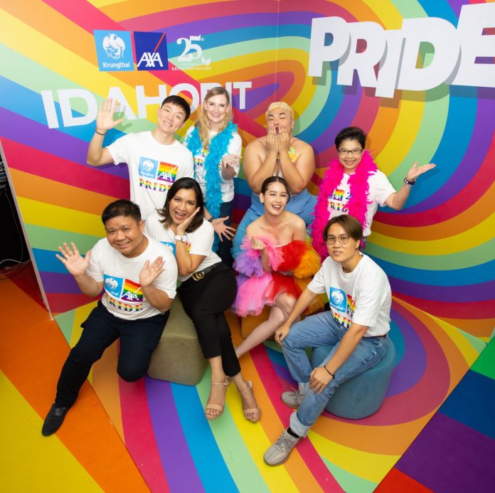 บมจ.กรุงไทย-แอกซ่า ประกันชีวิต ร่วมรณรงค์วันสากลยุติความเกลียดกลัวคนรักเพศเดียวกัน คนรักสองเพศ คนหลากหลายทางเพศ และคนข้ามเพศ (IDAHOBIT) เพื่อส่งเสริมความเท่าเทียมกันในที่ทำงาน สามารถเป็นตัวของตัวเองได้อย่างมีอิสระ และไม่มีข้อจำกัด ผ่านกิจกรรม “IDAHOBIT Our Bodies, Our Lives, Our Rights” นำโดย คุณแซลลี่ โอฮาร่า ประธานเจ้าหน้าที่บริหาร (คนที่ 2 จากซ้ายแถวหลัง) และคุณบุปผาวดี โอวรารินท์ ประธานเจ้าหน้าที่บริหาร ฝ่ายทรัพยากรบุคคลและภาพลักษณ์องค์กรและการสื่อสารองค์กร (คนขวาสุดแถวหลัง) ต้อนรับลูกค้า และพนักงาน พร้อมกล่าวถึงความสำคัญของสิทธิเท่าเทียมกัน และความมุ่งมั่นของบริษัทฯ ในการส่งเสริมความเท่าเทียม และความหลากหลาย ภายใต้ธีมของปีนี้ คือ “Our Bodies, Our Lives, Our Right ร่างกายของเรา ชีวิตของเรา สิทธิของเรา” เพื่อเป็นการตอกย้ำว่าทุกคนมีสิทธิในการแสดงออกทางเพศของตนได้อย่างอิสระ โดยปราศจากความรุนแรงทางจิตใจหรือร่างกาย