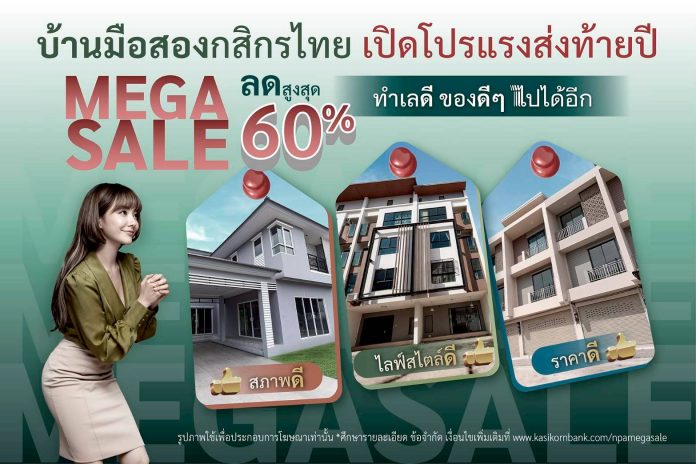กสิกรไทยจัดโปรแรง บ้านมือสองส่งท้ายปี Mega Sale ลดสูงสุด 60% ราคาดี ทำเลดี สภาพดี ของดี ๆ ไปได้อีก