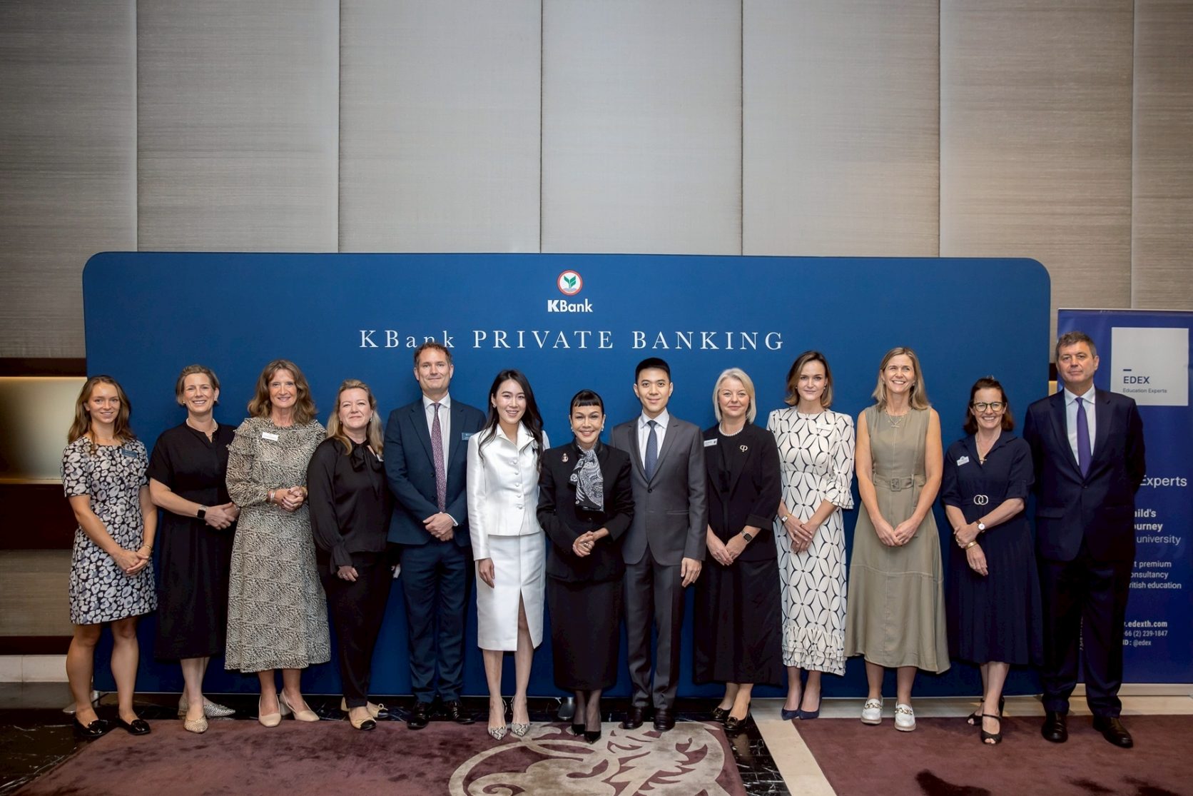 นางมัทนวัลย์ สมุทรักษ์ โอคส์ (ที่ 7 จากซ้าย) Senior Executive Director – Marketing Expert, Private Banking Group ธนาคารกสิกรไทย และ ดร. ชินวัฒน์ สกุลตั้งไพศาล (ที่ 6 จากขวา) Head of Consultant, EDEX- Education Experts ร่วมจัดงานสัมมนา “Top British Schools: The Elite Educational Experience” กิจกรรมพิเศษสำหรับลูกค้า KBank Private Banking