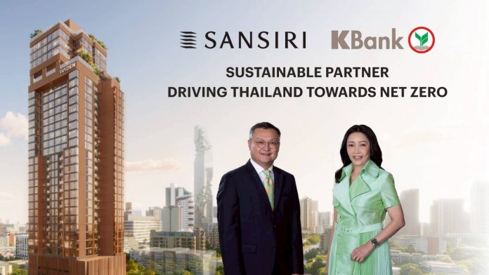 ธนาคารกสิกรไทย และแสนสิริ ในฐานะสถาบันการเงินชั้นนำ และผู้นำแห่งวงการอสังหาริมทรัพย์ ประกาศความร่วมมือครั้งยิ่งใหญ่ สร้างกลไกสำคัญในการขับเคลื่อนประเทศไทยสู่เป้าหมาย Net Zero สนับสนุนสินเชื่อเพื่อสิ่งแวดล้อม หรือกรีนโลน ประเภท Pre-Finance มูลค่า 4,000 ล้านบาท สำหรับ 3 โครงการคอนโดมิเนียมของแสนสิริ ต้นแบบคอนโดมิเนียมมาตรฐานใหม่ ซึ่งแสนสิริเป็นบริษัทแรกของธนาคารกสิกรไทยที่ใช้เกณฑ์การประเมินสินเชื่อที่เข้มข้นสอดคล้องตาม Thailand Taxonomy และผ่านหลักเกณฑ์การประเมินสินเชื่อเพื่อสิ่งแวดล้อมหรือกรีนโลนจากธนาคารกสิกรไทย สู่ก้าวสำคัญที่สะท้อนถึงบทบาท Bank of Sustainability ในการผลักดันให้คู่ค้ามุ่งดำเนินธุรกิจเพื่อความยั่งยืน