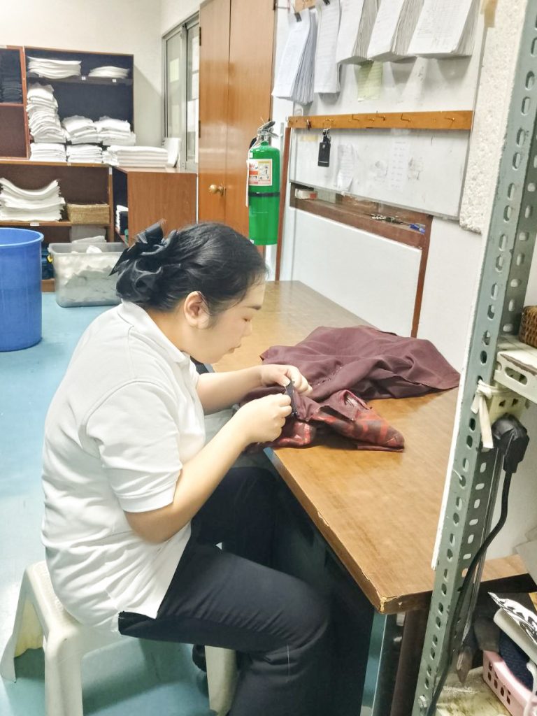 เนย ทำงานในแผนกแม่บ้าน ดูแลเรื่องลินิน ยูนิฟอร์ม ตั้งแต่วัดตัวไปจนถึงซ่อมแซมชุดยูนิฟอร์มของพนักงานที่ โรงแรมสุโขทัย “รู้สึกดีที่ได้เป็นตัวเองได้มากกว่าเดิม” เธอเล่า “ตอนนี้ส่งเงินให้แม่ทุกเดือนเลยค่ะ แม่บอกว่าไม่ต้องกังวลเรื่องเงินแล้ว หนูเองก็เก็บเงินได้ด้วย” เธอพูดต่อ น้ำเสียงมุ่งมั่น “ความฝันของหนูคืออยากเก็บเงินสร้างบ้านให้เสร็จตามความตั้งใจของแม่ อยากให้แม่ได้มีบ้านเป็นของเราเอง”