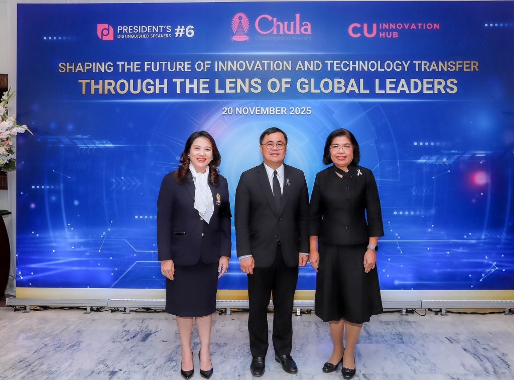 จุฬาลงกรณ์มหาวิทยาลัย ร่วมกับศูนย์กลางนวัตกรรมแห่งจุฬาลงกรณ์มหาวิทยาลัย (CU Innovation Hub) เดินหน้ายกระดับศักยภาพนวัตกรรมและทรัพย์สินทางปัญญาของประเทศ ผ่านการจัดงานเสวนา President’s Distinguished Speaker ครั้งที่ 6 “ก้าวสู่อนาคตของนวัตกรรมและการถ่ายทอดเทคโนโลยีผ่านมุมมองของผู้นำระดับโลก”