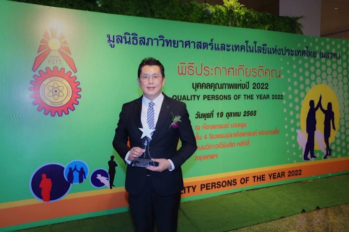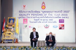 ดร. อุกฤษฎ์ ศรีดโรมนต์ ประธานเจ้าหน้าที่บริหาร ฝ่ายตัวแทน บมจ.กรุงไทย-แอกซ่า ประกันชีวิต (คนซ้าย) รับโล่เกียรติยศ “บุคคลคุณภาพแห่งปี 2022” (QUALITY PERSONS OF THE YEAR 2022) ภาคธุรกิจประกัน จากศ.ดร.เกษม จันทร์แก้ว องคมนตรี (คนขวา) โดยรางวัลดังกล่าวจัดโดยมูลนิธิสภาวิทยาศาสตร์และเทคโนโลยีแห่งประเทศไทย (มสวท.)