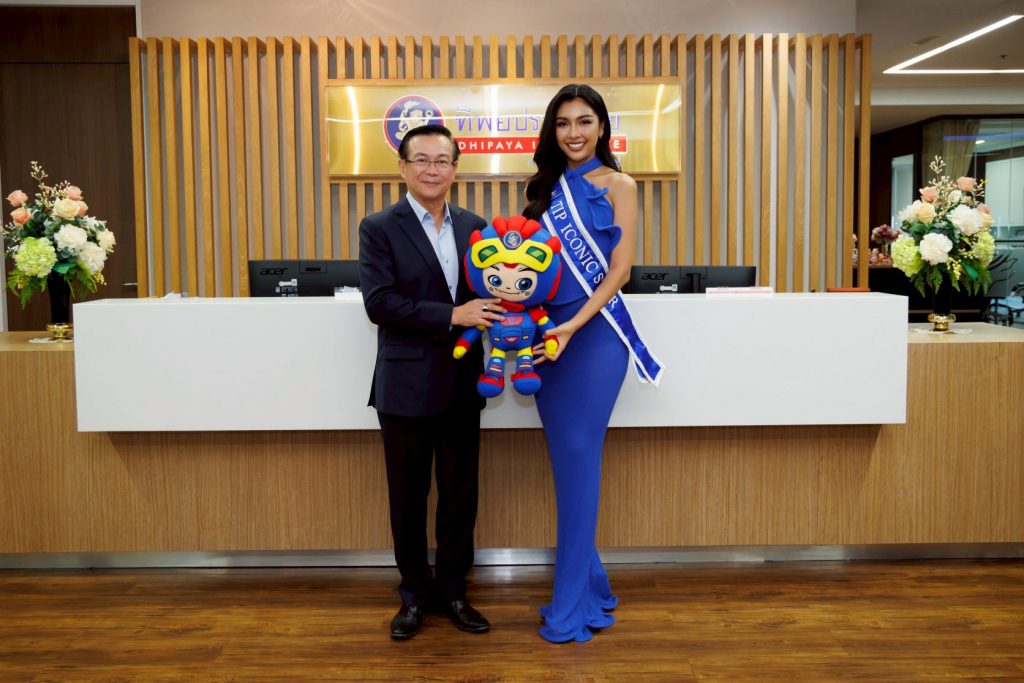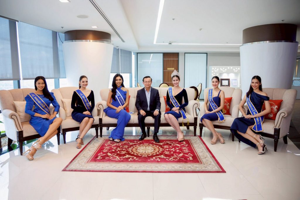ดร.สมพร สืบถวิลกุล ประธานเจ้าหน้าที่บริหาร บริษัท ทิพย กรุ๊ป โฮลดิ้งส์ จำกัด (มหาชน) และกรรมการผู้จัดการใหญ่ บริษัท ทิพยประกันภัย จำกัด (มหาชน) ให้การต้อนรับ นางสาวนาตาลี สุกีอุระ นางสาวถิ่นไทยงาม ประจำปี 2568 พร้อมรองทั้ง 4 และนางสาวปาณิศา สุทธิสว่าง (น้องอีน) ผู้ได้รับตำแหน่ง TIP ICONIC STAR ประจำปี 2568