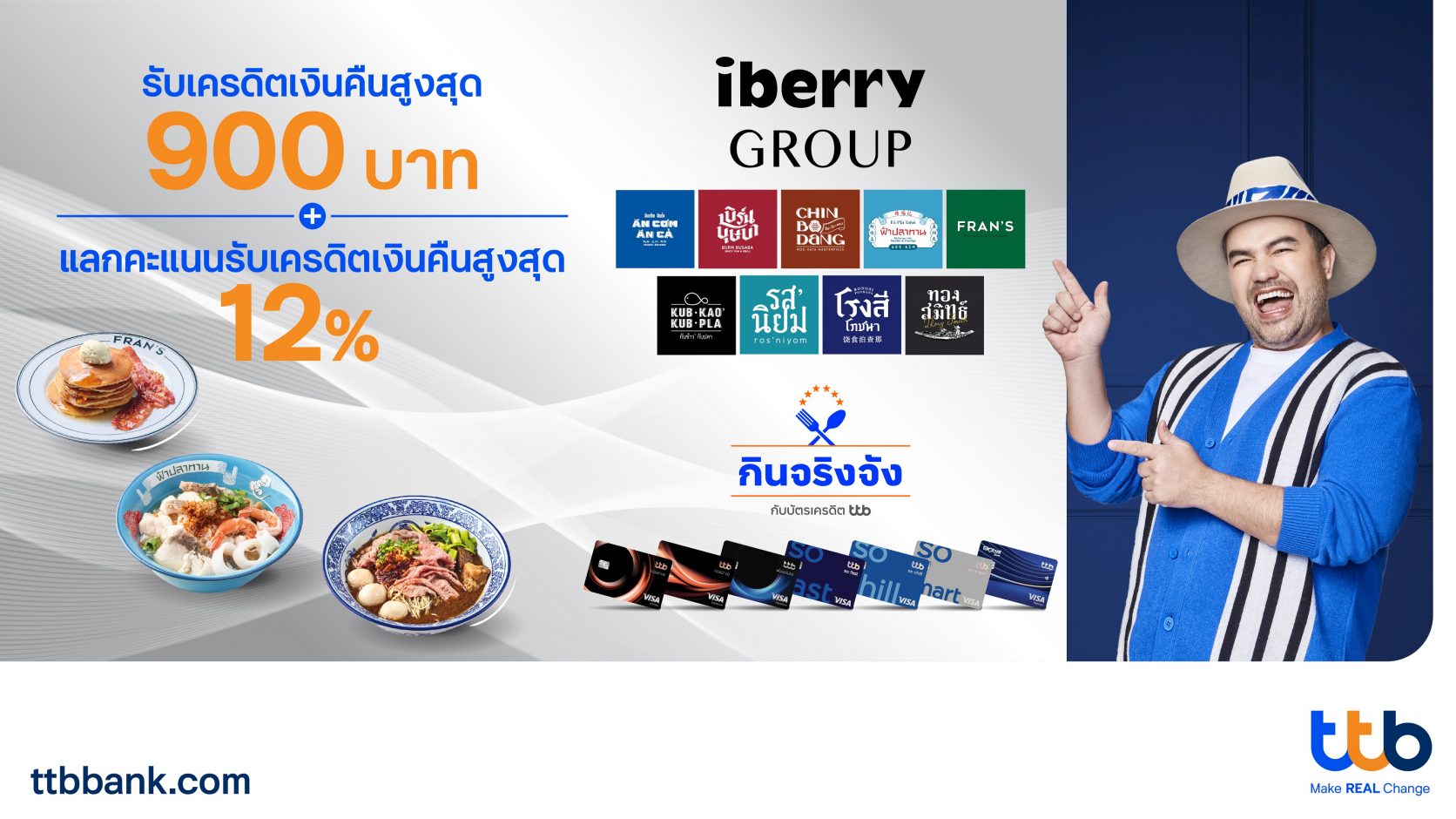 บัตรเครดิต ttb เดินหน้าขยายสิทธิประโยชน์ในหมวดร้านอาหารแบบไม่มีพัก จับมือ iberry group เสิร์ฟสิทธิพิเศษสุดคุ้ม ทั้งเครดิตเงินคืน แลกคะแนนรับเครดิตเงินคืน ครอบคลุม 9 ร้านอาหารชื่อดังในเครือ iberry group
