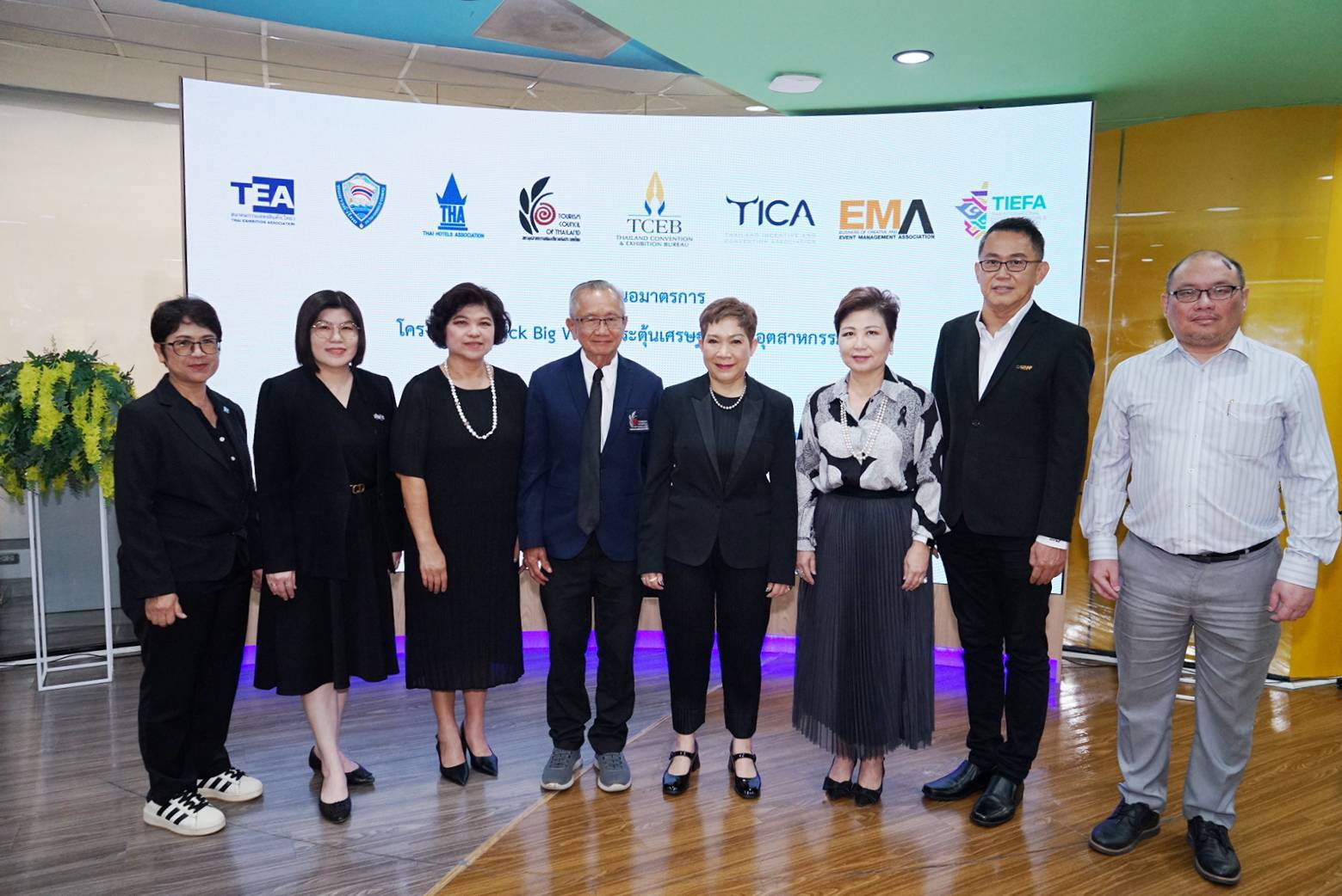 ดร.ศุภวรรณ ตีระรัตน์ ผู้อำนวยการสำนักงานส่งเสริมการจัดประชุมและนิทรรศการ (องค์การมหาชน) หรือ ทีเส็บ (ที่ 5 จากซ้าย) เป็นประธานการประชุมจัดทำมาตรการ “Quick Big Win” เพื่อร่วมขับเคลื่อนนโยบายของรัฐบาลในการกระตุ้นเศรษฐกิจและเสริมศักยภาพอุตสาหกรรมไมซ์ของประเทศ