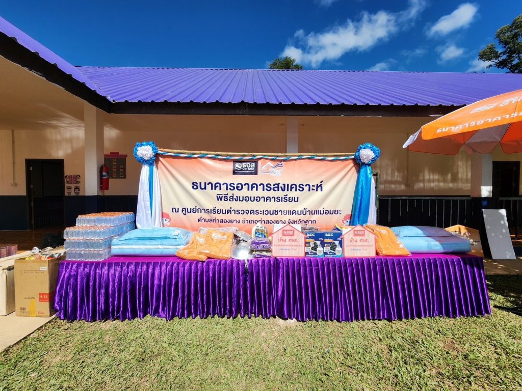 โดยมีพันตำรวจโท พนารัตน์ จินดากูล รองผู้กำกับการตำรวจตระเวนชายแดนที่ 34 และดาบตำรวจสุภาพ คีรีอรัณย์ ครูใหญ่ศูนย์การเรียนตำรวจตระเวนชายแดนบ้านแม่อมยะ เข้าร่วมในพิธี สำหรับการส่งมอบอาคารเรียนและบ้านให้แก่เด็กและเยาวชนในครั้งนี้ เป็น 1 ใน 5 ด้านของการแสดงความรับผิดชอบต่อสังคมและสิ่งแวดล้อม หรือ CSR ที่ ธอส. ให้ความสำคัญและดำเนินการ มาอย่างต่อเนื่องควบคู่กับการดำเนินงานตามภารกิจหลักในการสนับสนุนสินเชื่อเพื่อที่อยู่อาศัยแก่ประชาชนโดยเฉพาะกลุ่มผู้มีรายได้น้อยและปานกลางให้มีที่อยู่อาศัยเป็นของตนเอง มาตลอดระยะเวลากว่า 72 ปี ตามพันธกิจ “ทำให้คนไทยมีบ้าน”