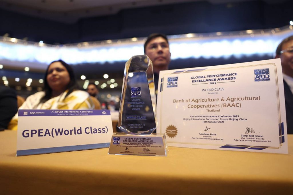 นายฉัตรชัย ศิริไล ผู้จัดการธนาคารเพื่อการเกษตรและสหกรณ์การเกษตร (ธ.ก.ส.) เปิดเผยว่า องค์กรคุณภาพแห่งเอเชียแปซิฟิก (Asia Pacific Quality Organization : APQO) ประกาศให้ ธ.ก.ส. ได้รับรางวัล Global Performance Excellence Award 2025 ในระดับสูงสุด World Class ด้วยคะแนนประเมินรวมสูงกว่า 700 คะแนน โดยอ้างอิงจาก The Malcolm Baldrige National Quality Award (MBNQA)