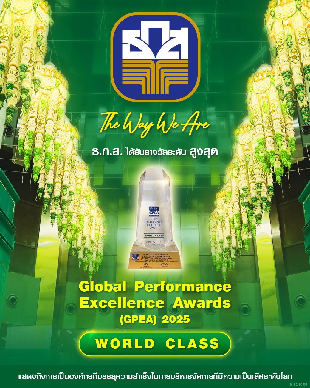 องค์กรคุณภาพแห่งเอเชียแปซิฟิก (Asia Pacific Quality Organization : APQO) ประกาศให้ ธ.ก.ส. ได้รับรางวัลสุดยอดองค์กรแห่งความเป็นเลิศระดับโลก Global Performance Excellence Award 2025