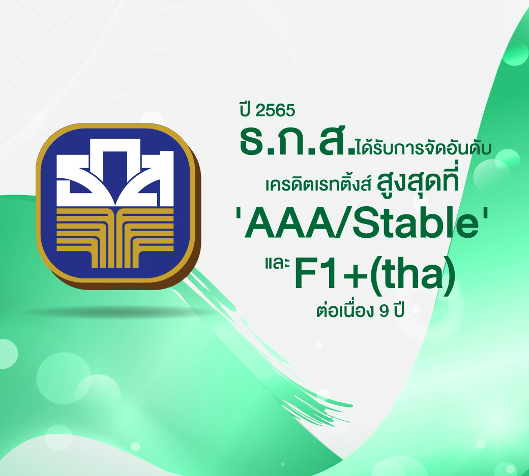 ‘ฟิทช์ เรทติ้งส์’ คงอันดับเครดิตภายในประเทศระยะยาว ธ.ก.ส. ที่สูงสุด ‘AAA (tha)’ แนวโน้มอันดับเครดิต Stable และระยะสั้นที่ ‘F1+ (tha)’ ต่อเนื่องเป็นปีที่ 9 สะท้อนถึงสถานะทางการเงินที่แข็งแกร่ง มั่นคง และมีเสถียรภาพ เป็นสถาบันการเงินเฉพาะกิจของรัฐที่มีการบริหารจัดการทางการเงิน ที่ดี และมีบทบาทสำคัญในการสนับสนุนนโยบายรัฐและพัฒนาภาคเกษตรได้อย่างยั่งยืนและ มีประสิทธิภาพ