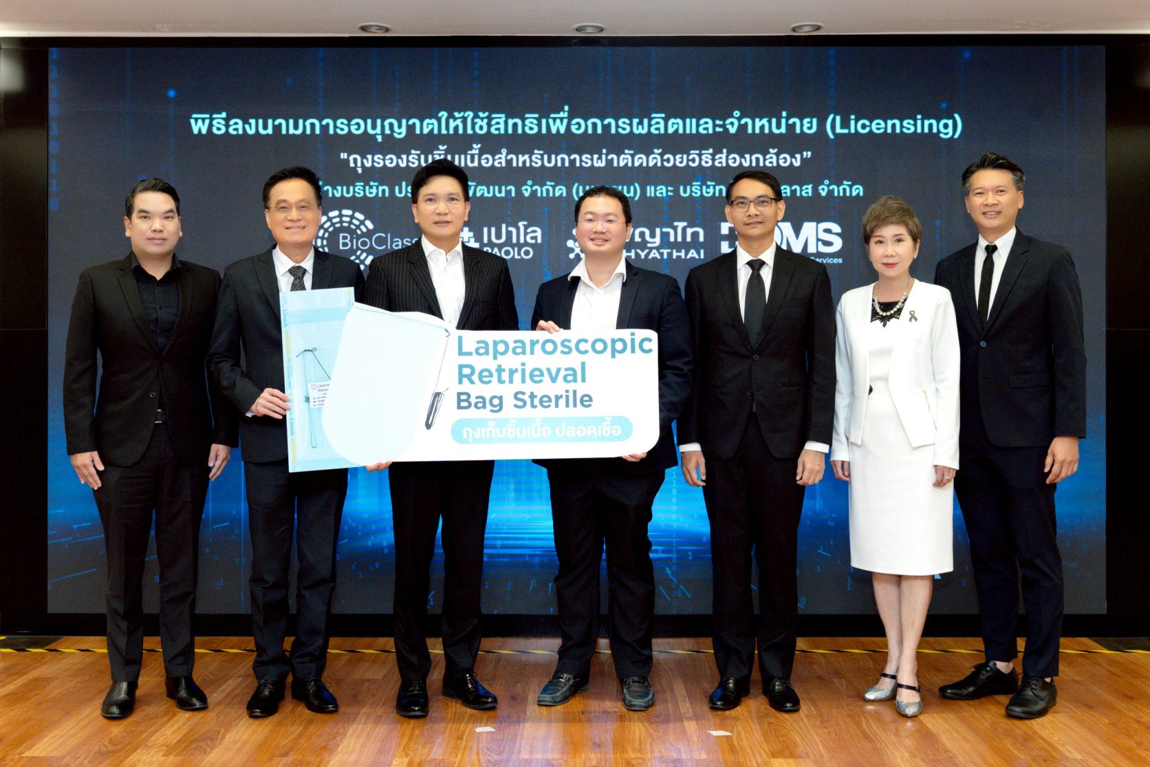 เครือโรงพยาบาลพญาไท–เปาโล เดินหน้าผลักดันนวัตกรรมทางการแพทย์ของไทยสู่การใช้งานจริงอย่างเป็นรูปธรรม ด้วยการลงนามอนุญาตสิทธิ์การผลิตและจำหน่าย (Licensing) นวัตกรรม “ถุงรองรับชิ้นเนื้อสำหรับการผ่าตัดด้วยวิธีส่องกล้อง” (Laparoscopic Retrieval Bag Sterile VP: OR BAG) ร่วมกับ บริษัท ไบโอคลาส จำกัด เพื่อยกระดับมาตรฐานความปลอดภัยในการผ่าตัดผ่านกล้อง และขยายการเข้าถึงอุปกรณ์คุณภาพระดับสากลสู่โรงพยาบาลทั่วประเทศ