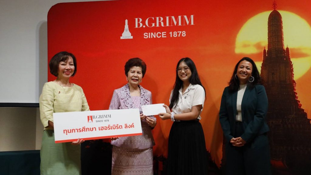 คุณหญิงทิพาวดี เมฆสวรรค์ ที่ปรึกษากิตติมศักดิ์ บริษัท บี.กริม เพาเวอร์ จำกัด (มหาชน) เป็นผู้แทนในการแจกรางวัลทุน “Herbert Link” ให้แก่นิสิต นักศึกษารวม 18 คน จาก 9 มหาวิทยาลัย ประจำปี 2568 ร่วมด้วย ศาสตราจารย์กิตติคุณ ดร.พรสรรค์ ถมังรักษ์สัตว์ นายกสมาคมไทย-เยอรมัน ผู้จัดงาน ดร.ไพบูลย์ ช่วงทอง ผู้แทนจากคณะกรรมการบริหาร มูลนิธิวัฒนธรรมไทย-เยอรมัน และคุณ Sweta Madhuri Kannan ผู้ช่วยทูตฝ่ายวัฒนธรรมและสื่อมวลชน สถานเอกอัครราชทูตเยอรมนี ร่วมเป็นเกียรติในงาน