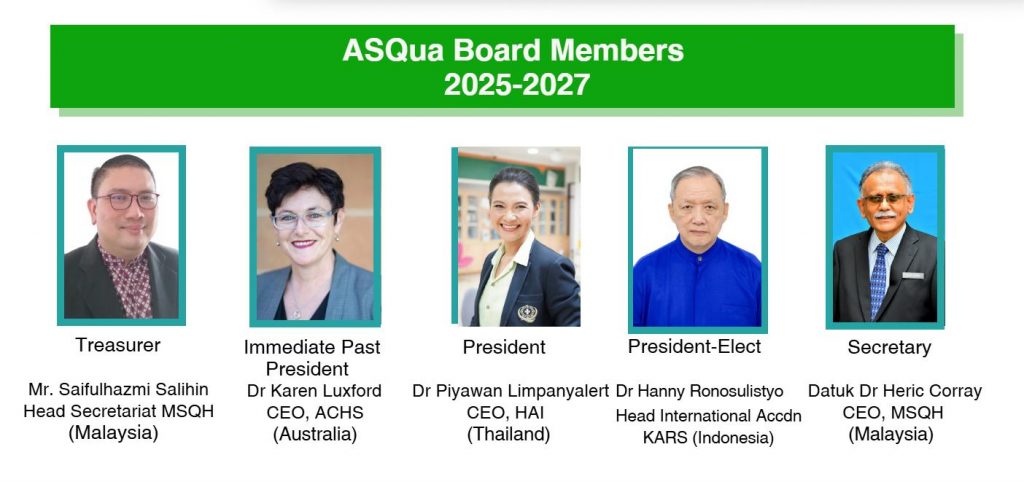 เมื่อวันที่ 14 ตุลาคม 2568 พญ.ปิยวรรณ ลิ้มปัญญาเลิศ ผู้อำนวยการสถาบันรับรองคุณภาพสถานพยาบาล (องค์การมหาชน) หรือ สรพ. รับมอบตำแหน่ง President of ASQua ที่มีวาระการทำงานในระหว่างปี ค.ศ. 2025–2027 จาก Dr.Karen Luxford ประธานเจ้าหน้าที่บริหาร (CEO) แห่ง Australian Council on Healthcare Standards (ACHS) ประเทศออสเตรเลีย ในงานประชุม 12th Executive Board Meeting 2025 และ 9th Annual General Meeting of the Asian Society for Quality in Health Care (ASQua) ซึ่งจัดขึ้นภายในงานประชุม ISQua Conference ครั้งที่ 41 ณ World Trade Center, São Paulo ประเทศบราซิล
