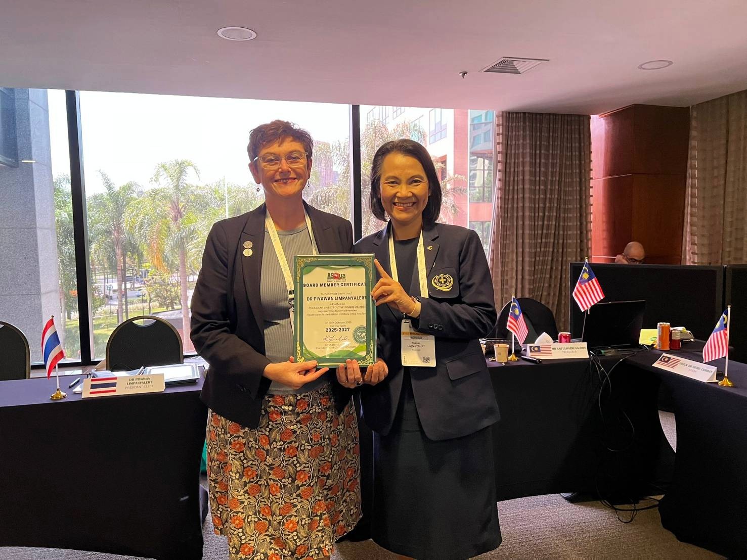 เมื่อวันที่ 14 ตุลาคม 2568 พญ.ปิยวรรณ ลิ้มปัญญาเลิศ ผู้อำนวยการสถาบันรับรองคุณภาพสถานพยาบาล (องค์การมหาชน) หรือ สรพ. รับมอบตำแหน่ง President of ASQua ที่มีวาระการทำงานในระหว่างปี ค.ศ. 2025–2027 จาก Dr.Karen Luxford ประธานเจ้าหน้าที่บริหาร (CEO) แห่ง Australian Council on Healthcare Standards (ACHS) ประเทศออสเตรเลีย ในงานประชุม 12th Executive Board Meeting 2025 และ 9th Annual General Meeting of the Asian Society for Quality in Health Care (ASQua) ซึ่งจัดขึ้นภายในงานประชุม ISQua Conference ครั้งที่ 41 ณ World Trade Center, São Paulo ประเทศบราซิล