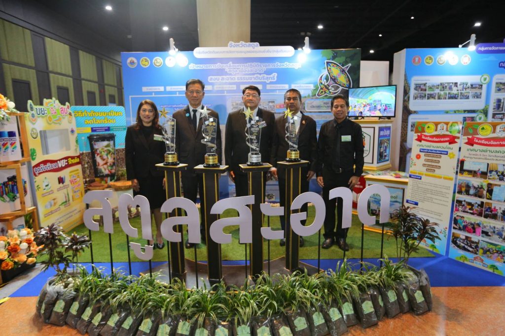 สำหรับพิธีฯ ในวันนี้ นายศักดิ์ดา ได้เป็นประธานมอบโล่รางวัลการจัดการขยะมูลฝอยชุมชน “จังหวัดสะอาด” ประจำปี พ.ศ. 2568 รวม 20 รางวัล ประเภทกลุ่มจังหวัดต้นแบบการจัดการขยะมูลฝอยชุมชนยั่งยืน (กลุ่มต้นแบบ) รางวัลชนะเลิศ ได้แก่ จังหวัดสตูล ประเภทกลุ่มการจัดการขยะมูลฝอยชุมชน “จังหวัดสะอาด” (กลุ่มทั่วไป) กลุ่มจังหวัดขนาดใหญ่ รางวัลชนะเลิศ ได้แก่ จังหวัดเชียงใหม่ กลุ่มจังหวัดขนาดกลาง รางวัลชนะเลิศ ได้แก่ จังหวัดหนองคาย และกลุ่มจังหวัดขนาดเล็ก รางวัลชนะเลิศ ได้แก่ จังหวัดอำนาจเจริญ
