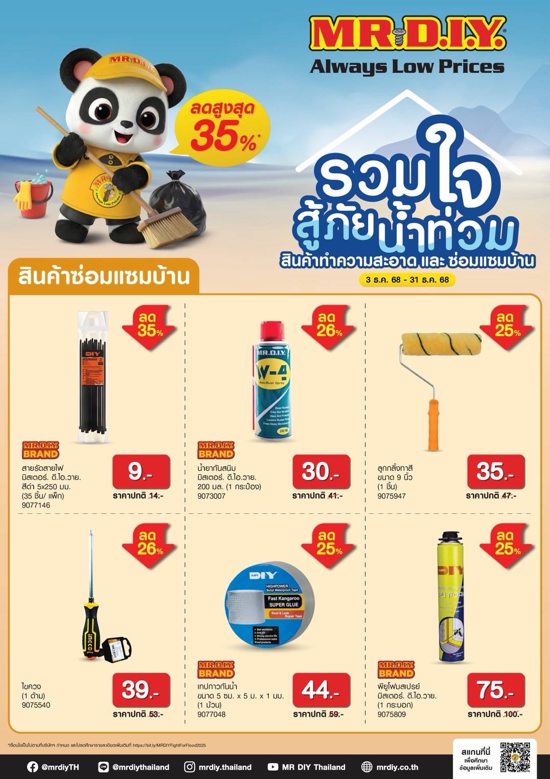 มิสเตอร์. ดี.ไอ.วาย. จัดโปร ‘รวมใจสู้ภัยน้ำท่วม’ ช่วยเหลือผู้ได้รับผลกระทบจากอุทกภัยภาคใต้ต่อเนื่องลดราคาสินค้าทำความสะอาดและสินค้าซ่อมแซมบ้านสูงสุด 35%