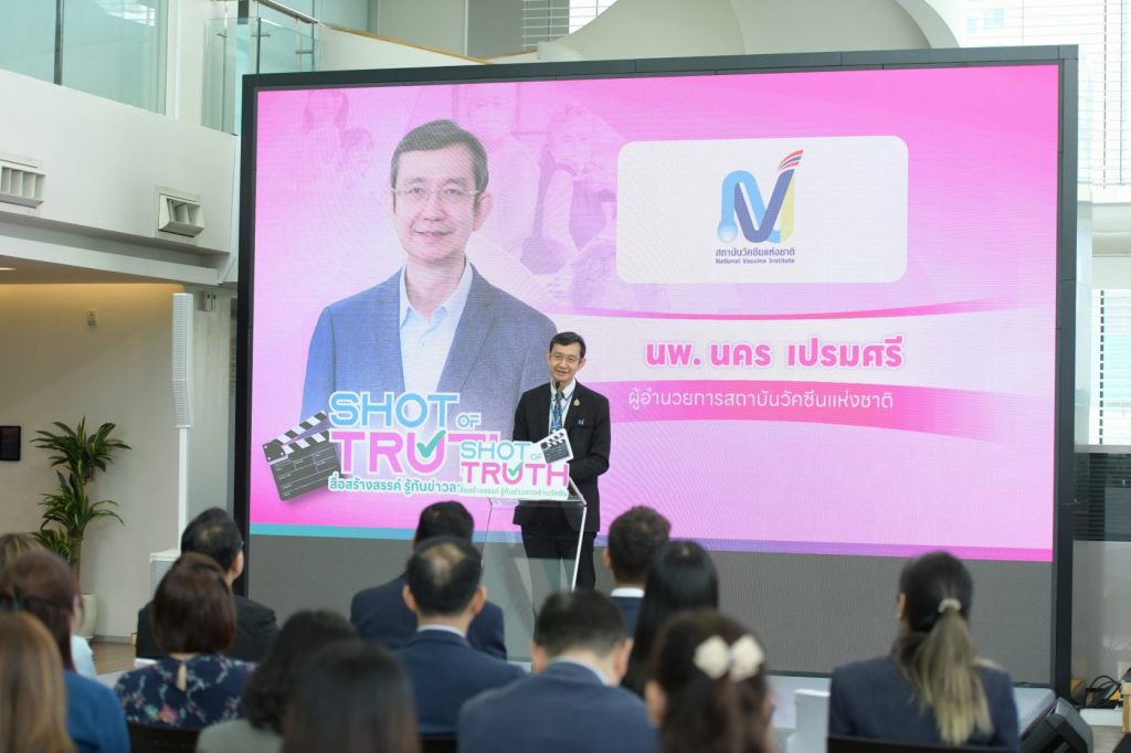 มูลนิธิวัคซีนเพื่อประชาชน ร่วมกับ สถาบันวัคซีนแห่งชาติ ผนึกภาคีเครือข่ายทั้งภาครัฐและเอกชนได้แก่ สำนักงานส่งเสริมเศรษฐกิจดิจิทัล (depa) ศูนย์ชัวร์ก่อนแชร์ สำนักข่าวไทย อสมท บริษัท เมืองไทยประกันชีวิต จำกัด (มหาชน) บริษัท ไฟเซอร์ (ประเทศไทย) จำกัด บริษัท แอสตร้าเซนเนก้า (ประเทศไทย) จำกัด และ MorDee (หมอดี) แพลตฟอร์มบริการสุขภาพอัจฉริยะ โดย ทรู ดิจิทัล กรุ๊ป เปิดตัวโครงการ “Shot of Truth สื่อสร้างสรรค์ รู้ทันข่าวลวงด้านวัคซีน”