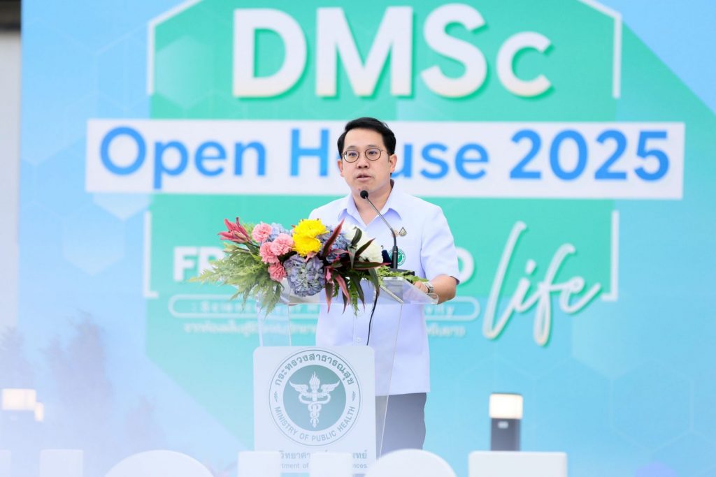 ดร.นพ.สราวุฒิ บุญสุข อธิบดีกรมวิทยาศาสตร์การแพทย์ กล่าวว่า งานเปิดบ้านกรมวิทยาศาสตร์การแพทย์ (DMSc Open House 2025) ในปีนี้ มีความพิเศษกว่าปีที่ผ่าน ๆ มา โดยการจัดกิจกรรมภายใต้แนวคิด “From Lab to Life : Sciences for Healthy Longevity จากห้องแล็บสู่ชีวิตจริงวิทยาศาสตร์เพื่อการมีสุขภาพยืนยาว” ซึ่งเป็นการแสดงถึงความพร้อมและศักยภาพของกรมวิทยาศาสตร์การแพทย์ในทุกมิติ และเพื่อประชาสัมพันธ์และเผยแพร่ความก้าวหน้าทางวิทยาศาสตร์การแพทย์ให้หน่วยงานที่เกี่ยวข้องได้รับทราบและเข้าใจบทบาทของกรมวิทยาศาสตร์การแพทย์ นวัตกรรมทางการแพทย์ ตลอดจนสร้างการรับรู้เกี่ยวกับวิทยาศาสตร์เพื่อสุขภาพยืนยาว โดยนำเสนอตัวอย่างการประยุกต์ใช้ผลงานจากห้องปฏิบัติการสู่การใช้งานจริง รวมถึงความก้าวหน้าทางวิทยาการและเทคโนโลยีด้านวิทยาศาสตร์การแพทย์ เพื่อประโยชน์ต่อประเทศชาติและประชาชน
