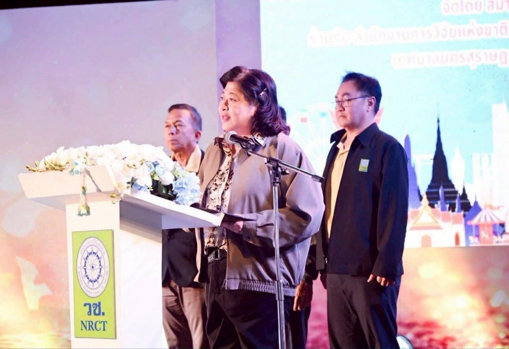 วันที่ 12 ตุลาคม 2568 สำนักงานการวิจัยแห่งชาติ(วช.) กระทรวงการอุดมศึกษา วิทยาศาสตร์ วิจัยและนวัตกรรม โดย ดร.วิภารัตน์ ดีอ่อง ผู้อำนวยการสำนักงานการวิจัยแห่งชาติ ร่วมกิจกรรมในการแสดงโดรนแปรอักษรเพื่อส่งเสริมมรดกทางวัฒนธรรมและการท่องเที่ยว ในงานประเพณี ชักพระและแข่งเรือยาว จังหวัดสุราษฎร์ธานี ประจำปี 2568 โดยมี นายหัสชัย เรืองนุ้ย รองนายกเทศมนตรีนครสุราษฎร์ธานี, นางโสภา กาญจนะ นายกองค์การบริหารส่วนจังหวัดสุราษฎร์ธานี, นางสาวกานต์สินี โอภาสรังสรรค์ สมาชิกสภาผู้แทนราษฎร จ.สุราษฎร์ธานี คณะผู้บริหารท้องถิ่น ผู้ทรงคุณวุฒิจาก วช. สื่อมวลชน และแขกผู้มีเกียรติ เข้าร่วมงาน ณ ลานสะพานนริศ อำเภอเมืองสุราษฎร์ธานี จังหวัดสุราษฎร์ธานี