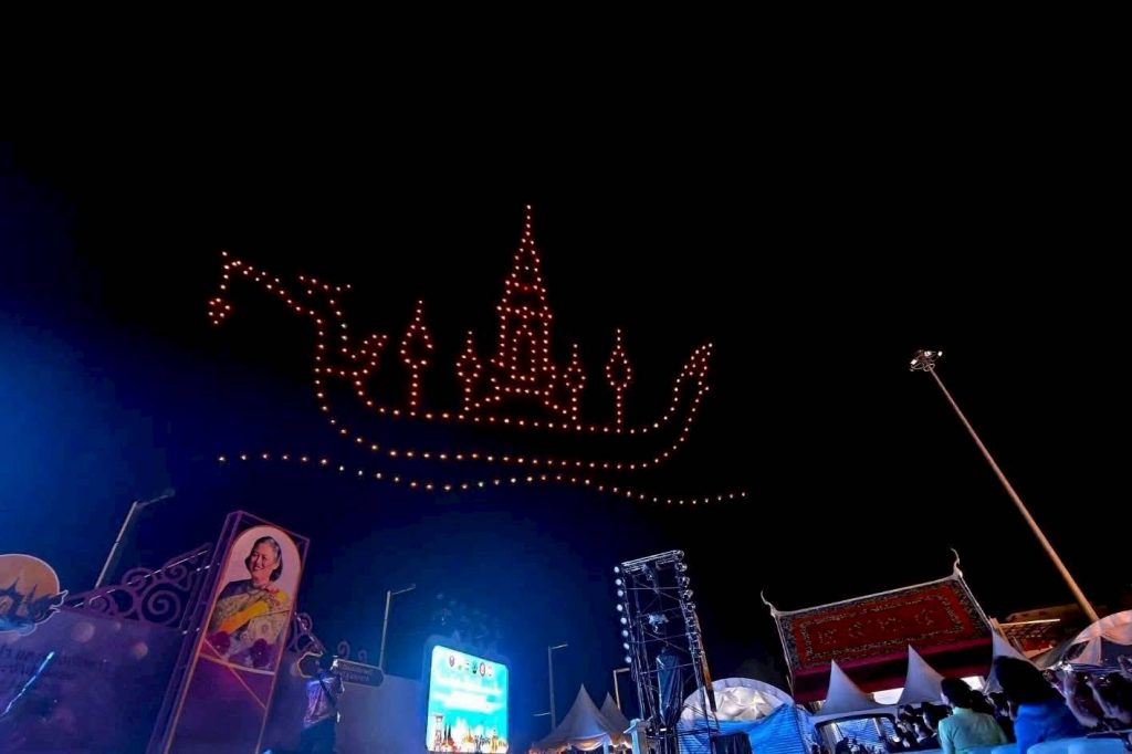 ดร.วิภารัตน์ ดีอ่อง ผู้อำนวยการสำนักงานการวิจัยแห่งชาติ กล่าวสนับสนุนการจัดงานว่า วช. ได้ให้ความสำคัญกับการนำวิจัยและนวัตกรรม ส่งเสริมเทศกาลประเพณีที่เป็นมรดกทางวัฒนธรรมในภูมิภาคต่างๆ ในงานประเพณีชักพระและแข่งเรือยาวของจ.สุราษฏร์ธานี การนำนวัตกรรมโดรนแปรอักษรมาร่วมสนับสนุนกิจกรรมครั้งนี้ ซึ่งถือเป็นส่วนสำคัญของงานประเพณีที่เป็นมรดกทางวัฒนธรรมของภาคใต้ ที่สะท้อนให้เห็นถึงวัฒนธรรม ความศรัทธา และความสามัคคีของชาวสุราษฎร์ธานีที่สืบทอดกันมาอย่างยาวนาน ทั้งยังเป็นโอกาสพิเศษที่จังหวัดสุราษฎร์ธานีได้นำเทคโนโลยีและนวัตกรรมมาผสานกับวัฒนธรรมท้องถิ่นได้อย่างงดงามและลงตัว ผ่านการแสดงโดรนแปรอักษร เพื่อส่งเสริมการท่องเที่ยว สำหรับกิจกรรมการแสดงโดรนแปรอักษรในครั้งนี้ เกิดจากความร่วมมือระหว่างหลายภาคส่วน ทั้งภาครัฐ ภาคการศึกษา และภาคประชาชน ที่ได้มีโอกาสแสดงศักยภาพด้านเทคโนโลยีร่วมกับทีมงานผู้เชี่ยวชาญ ซึ่งได้รับการสนับสนุนจาก วช. โดย วช. ได้ให้ความสำคัญกับการผลักดันงานวิจัยและนวัตกรรมให้เกิดประโยชน์ในระดับพื้นที่ เพื่อสร้างการเรียนรู้และแรงบันดาลใจให้กับคนรุ่นใหม่ในการนำวิทยาศาสตร์และนวัตกรรมมาขับเคลื่อนชุมชน