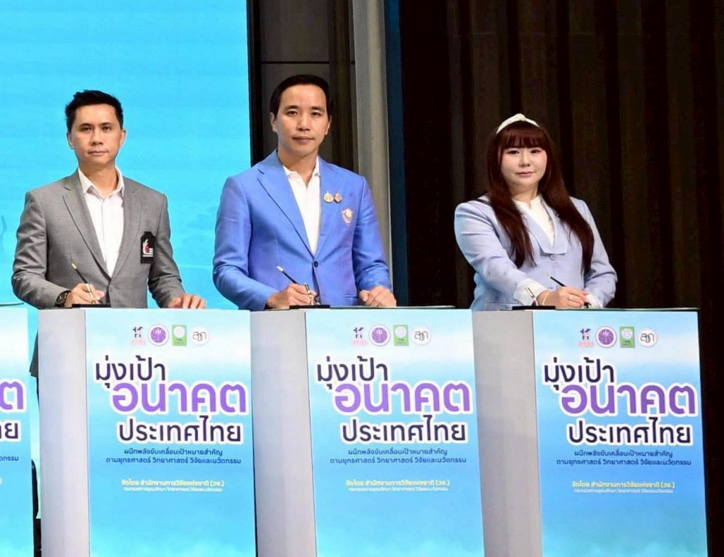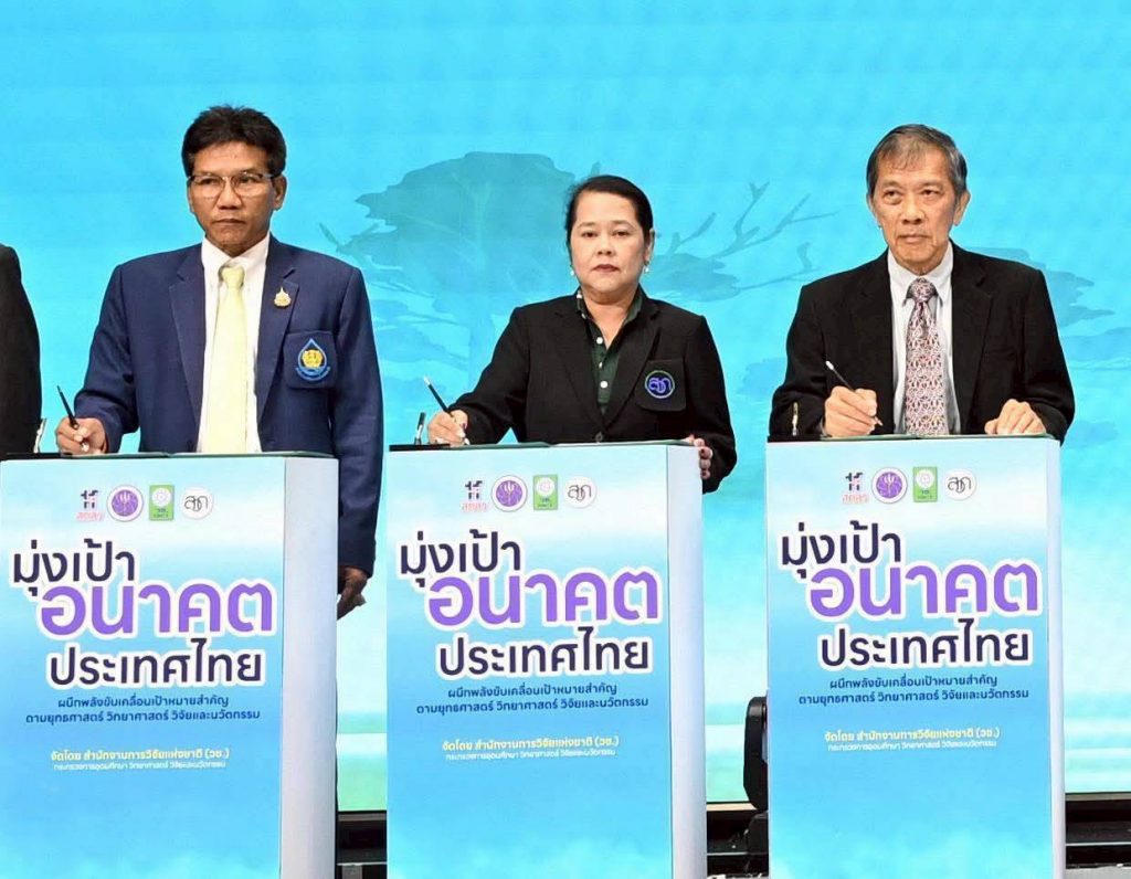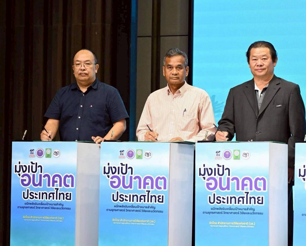 วันที่ 14 ตุลาคม 2568 สำนักงานการวิจัยแห่งชาติ (วช.) กระทรวงการอุดมศึกษา วิทยาศาสตร์ วิจัยและนวัตกรรม ร่วมกับจังหวัดสงขลาและภาคีเครือข่ายในพื้นที่ จัดพิธีลงนามบันทึกข้อตกลงความร่วมมือกิจกรรม “มุ่งเป้าอนาคตประเทศไทย น้ำมั่นคง ไม่ท่วม ไม่แล้ง” เพื่อขับเคลื่อนเป้าหมายสำคัญตามยุทธศาสตร์ ววน.