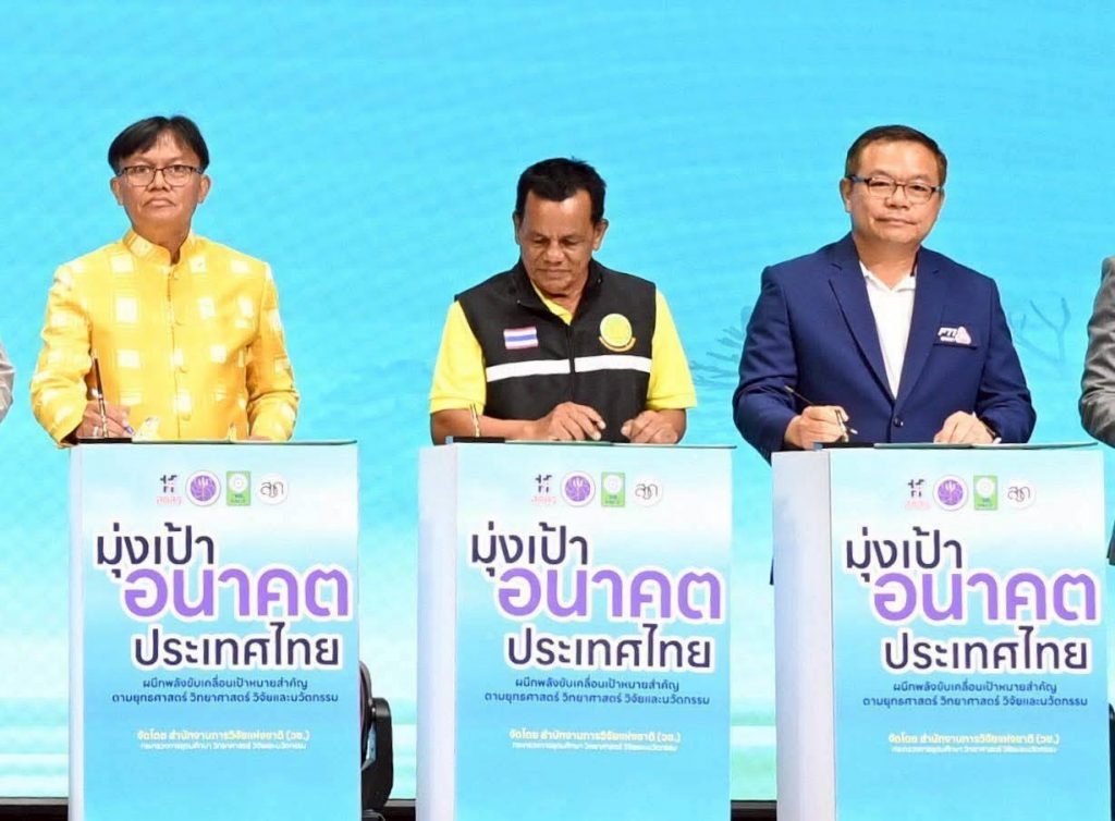 ถัดมาเป็นพิธีลงนามบันทึกข้อตกลงความร่วมมือระหว่าง วช. กับหน่วยงานพันธมิตรในพื้นที่ จังหวัดสงขลา และร่วมแสดงเจตนารมณ์ ได้แก่