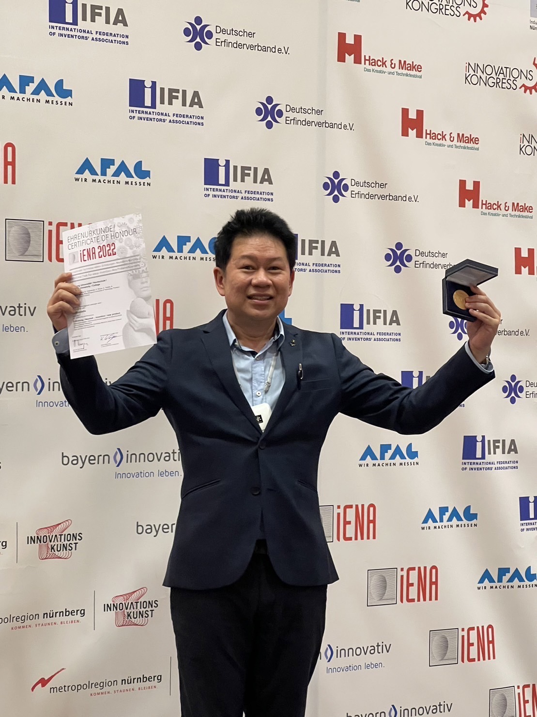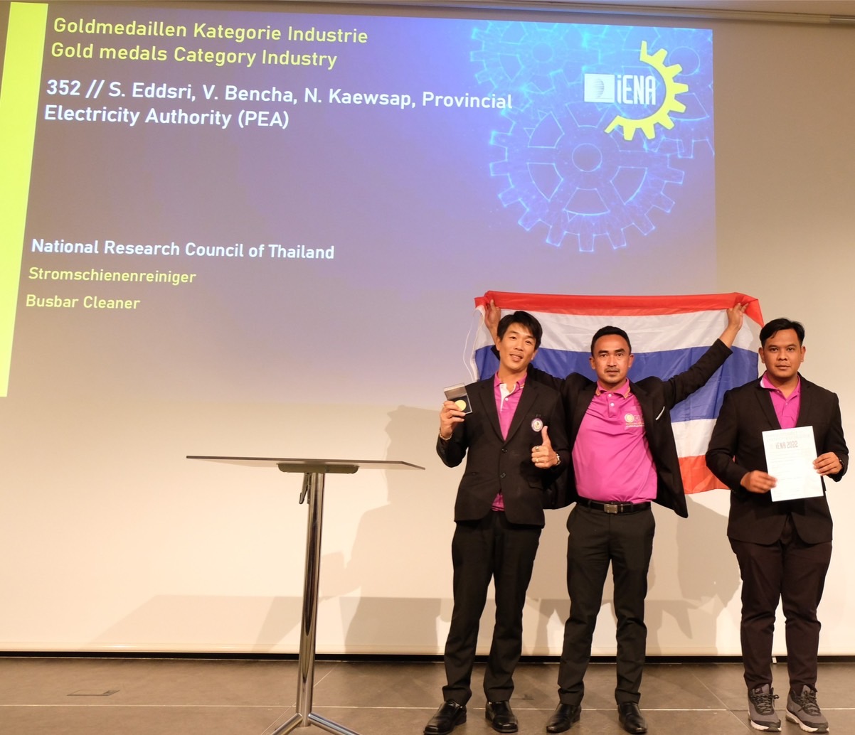 ดร.วิภารัตน์ ดีอ่อง ผู้อำนวยการสำนักงานการวิจัยแห่งชาติ กล่าวว่า ปีนี้ สำนักงานการวิจัยแห่งชาติ(วช.) กระทรวงการอุดมศึกษา วิทยาศาสตร์ วิจัยและนวัตกรรม ได้นำคณะนักประดิษฐ์และนักวิจัยไทย รับเหรียญรางวัลจาก iENA2022 มีดังนี้ 1) รางวัลเหรียญทอง 10 ผลงาน ได้แก่ ผลงานเรื่อง “เตียงปรับระดับอัตโนมัติระบบปัญญาประดิษฐ์สำหรับทารกหรือเด็กเล็ก” ของ ผู้ช่วยศาสตราจารย์ สุภาวดี ทับกล่ำ และคณะ แห่ง มหาวิทยาลัยธรรมศาสตร์ ผลงานเรื่อง “อุปกรณ์ป้องกันดวงตาทารกขณะส่องไฟรักษา” ของ ผู้ช่วยศาสตราจารย์ สุภาวดี ทับกล่ำ และคณะ แห่ง มหาวิทยาลัยธรรมศาสตร์ ผลงานเรื่อง “อุปกรณ์ป้องกันดวงตาทารกขณะส่องไฟรักษา” ของ ผู้ช่วยศาสตราจารย์ สุภาวดี ทับกล่ำ และคณะ แห่ง มหาวิทยาลัยธรรมศาสตร์ ผลงานเรื่อง “เครื่องคัดกรองประเมินความเสี่ยงผู้ป่วยโรคกระดูกพรุนแบบพกพาด้วยแสงความยาวคลื่นช่วงใกล้อินฟราเรดเพิ่มประสิทธิภาพด้วยปัญญาประดิษฐ์” ของ รองศาสตราจารย์ ดร.อนรรฆ ขันธะชวนะ และคณะ แห่ง มหาวิทยาลัยเทคโนโลยีพระจอมเกล้าธนบุรี ผลงานเรื่อง “ลูกอมเม็ดนิ่ม [6]-จินเจอรอล สำหรับแก้เมารถเมาเรือ” ของ รองศาสตราจารย์ ดร.เภสัชกร ภาคภูมิ พาณิชยูปการนันท์ และคณะแห่ง มหาวิทยาลัยสงขลานครินทร์ ผลงานเรื่อง “นวัตกรรมเครื่องกำจัดวัชพืชลอยน้ำแบบบดละเอียดสู่การใช้ประโยชน์ทางการเกษตรของชุมชน” ของ นายนพวัฒน์ พักใส และคณะ แห่ง การไฟฟ้าฝ่ายผลิตแห่งประเทศไทย ผลงานเรื่อง “หุ่นยนต์อเนกประสงค์เพื่องานบำรุงรักษาสายส่ง” ของ ดร.ธงชัย ดิษยเดช และคณะแห่ง การไฟฟ้าฝ่ายผลิตแห่งประเทศไทย ผลงานเรื่อง “อุปกรณ์สลับแหล่งจ่ายแรงดันอัตโนมัติ” ของ นายจิรเชษฐ์ เชื้อเมืองพาน และคณะ แห่ง การไฟฟ้าส่วนภูมิภาค ผลงานเรื่อง “ชุดเกียร์อเนกประสงค์ ของ นายสรายุทธ พุฒทองหลาง และคณะ แห่ง การไฟฟ้าส่วนภูมิภาค ผลงานเรื่อง “P-MAC: เครื่องมือตรวจสอบมิเตอร์และ ซี.ที. แรงต่ำ” ของ นายทรงศักดิ์ พิกุลทอง และคณะ แห่ง การไฟฟ้าส่วนภูมิภาค และผลงานเรื่อง “หมุนสลายคราบ” ของ นายสิทธิเดช เอียดสี และคณะ แห่ง การไฟฟ้าส่วนภูมิภาค 2) เหรียญเงิน 13 ผลงาน และ 3) เหรียญทองแดง 6 ผลงาน และเป็นที่น่ายินดีที่นักประดิษฐ์และนักวิจัยไทย สามารถคว้าSpecial Prize ที่มีการมอบรางวัลบนเวทีอีก 5 ผลงาน ได้แก่ รางวัล iENA Fairmanagement จากผลงานเรื่อง “เตียงปรับระดับอัตโนมัติระบบปัญญาประดิษฐ์สำหรับทารกหรือเด็กเล็ก” ของ ผู้ช่วยศาสตราจารย์ สุภาวดี ทับกล่ำ และคณะ แห่ง มหาวิทยาลัยธรรมศาสตร์รางวัล IFIA for the Best Green Innovation จากผลงานเรื่อง “UNC CALCIUM ผลิตภัณฑ์อาหารเสริมแคลเซียม MCHC ส