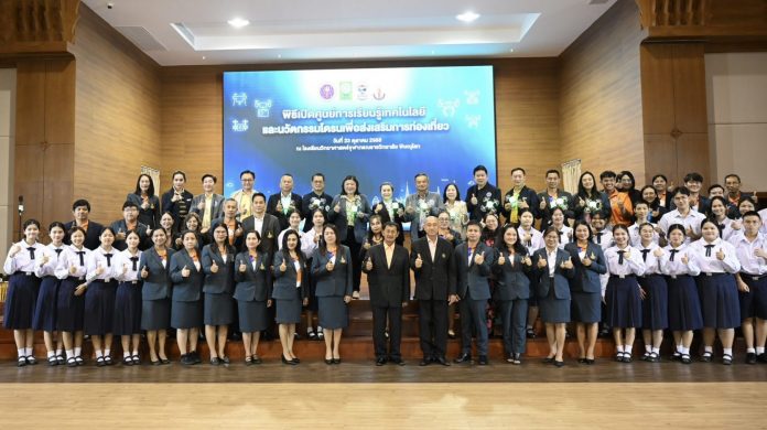 วันที่ 23 ตุลาคม 2568 สำนักงานการวิจัยแห่งชาติ (วช.) กระทรวงการอุดมศึกษา วิทยาศาสตร์ วิจัยและนวัตกรรม ร่วมกับ สมาคมกีฬาเครื่องบินจำลองและวิทยุบังคับ จัดพิธีเปิดศูนย์การเรียนรู้เทคโนโลยีและนวัตกรรมโดรนเพื่อส่งเสริมการท่องเที่ยว โดย ดร.วิภารัตน์ ดีอ่อง ผู้อำนวยการสำนักงานการวิจัยแห่งชาติ ให้เกียรติเป็นประธานในพิธีเปิด พร้อมด้วย นางสาวจิรวรรณ สุรเสียง รองผู้อำนวยการสำนักงานเขตพื้นที่การศึกษามัธยมศึกษาพิษณุโลก อุตรดิตถ์ นายพิศิษฐ์ มิตรเกื้อกูล นายกสมาคมกีฬาเครื่องบินจำลองและวิทยุบังคับ ผู้บริหาร คณะครู และนักเรียนจากโรงเรียนวิทยาศาสตร์จุฬาภรณราชวิทยาลัย จังหวัดพิษณุโลก ให้การต้อนรับ ณ โรงเรียนวิทยาศาสตร์จุฬาภรณราชวิทยาลัย จังหวัดพิษณุโลก