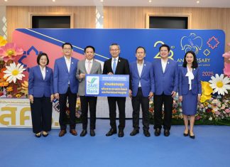 คุณประณต เวสารัชวิทย์ (ที่ 2 จากขวา) กรรมการบริหารสายงานการตลาดและขาย Wacoal และคุณอินทิรา นาคสกุล (ที่ 1 จากขวา) ผู้อำนวยการฝ่ายการตลาด บริษัท ไทยวาโก้ จำกัด (มหาชน) ร่วมกับคณะผู้บริหาร ศูนย์การค้าและโครงการในเครือ บริษัท แอสเสท เวิรด์ คอร์ป จำกัด (มหาชน) หรือ AWC นำโดย คุณจารุวัลย์ วงศ์เจษฎาสกุล (ที่ 3 จากซ้าย) หัวหน้าฝ่ายปฏิบัติการรีเทล คุณอรศิริ อนันตมงคลชัย (ที่ 2 จากซ้าย) หัวหน้าสายงานการวางกลยุทธ์แบรนด์และการตลาด และ คุณเอกกฤตา แก้วพูลศรี (ที่ 1 จากซ้าย) ผู้อำนวยการ ศูนย์การค้าเกทเวย์ แอท บางซื่อ
