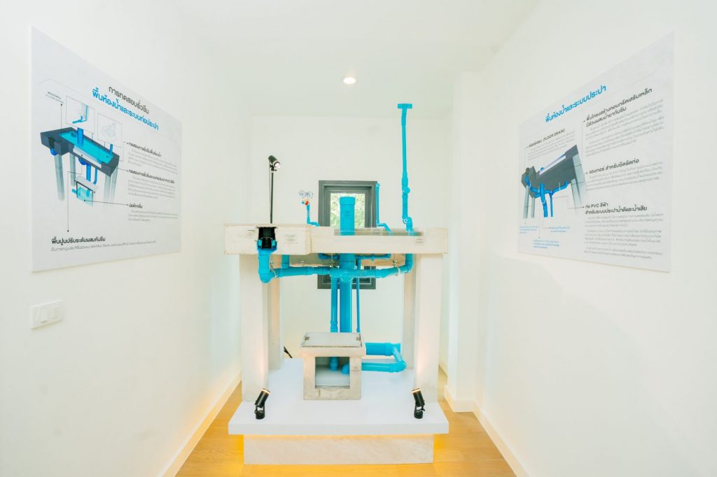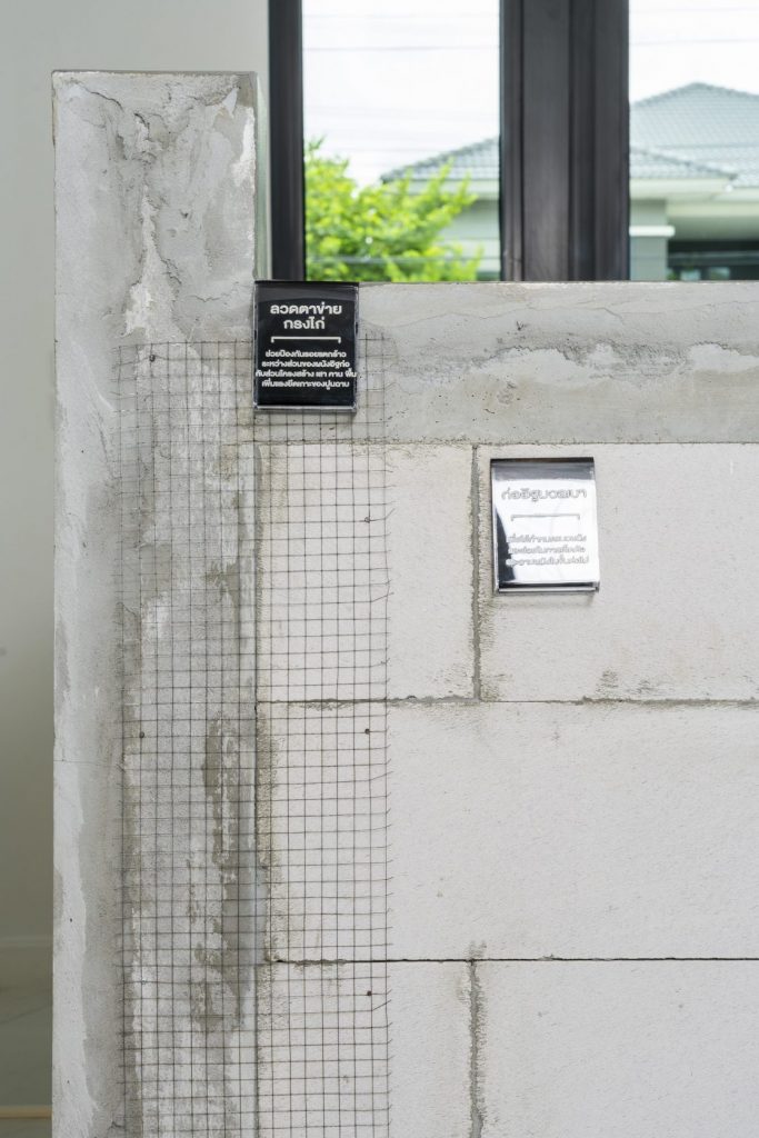 • เจาะลึกโครงสร้างบ้าน – ขั้นตอนการก่อผนังด้วย อิฐมวลเบา ที่มีความแข็งแกร่งแต่น้ำหนักเบา พร้อมคุณสมบัติเป็นฉนวนกันไฟและกันความร้อน ลดการใช้พลังงานไฟฟ้า การก่ออิฐใช้ปูนก่ออัดแน่นเต็มพื้นที่ ไม่มีช่องว่าง เสริมความแข็งแรงด้วยเสาเอ็น คานทับหลัง และลวดตาข่าย ป้องกันการแตกร้าวระหว่างผนังและโครงสร้าง อีกทั้งยังจัดแสดงกระบวนการฉาบผนัง สกิมโค้ท ทาสีรองพื้น และทาสีจริง ที่ปลอดสารระเหย รวมถึงการติดวอลเปเปอร์ ยับยั้งไวรัสและแบคทีเรีย