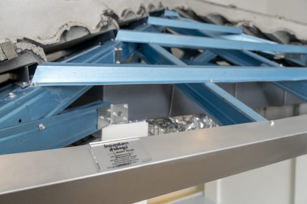 • หลังคามาตรฐานสูง – ชมโครงสร้างหลังคาที่ปกติลูกค้าไม่สามารถมองเห็นได้ โดยเลือกใช้ โครงเหล็กชุบกัลป์วาไนซ์* พร้อมกระเบื้องคอนกรีต เชิงชายเสริมป้องกันน้ำฝนซึม ฉนวนกันความร้อน และฝ้าชายคา ไวนิลที่ช่วยระบายอากาศ ลดอุณหภูมิภายในบ้านได้ถึง 7 องศาเซลเซียส* ช่วยให้บ้านเย็นและหลังคามีอายุการใช้งานที่ยาวนาน อีกทั้งยังออกแบบให้รองรับการติดตั้ง Solar Roof ที่จะทำให้การผลิตพลังงานแสงอาทิตย์มีประสิทธิภาพสูงสุด พร้อมหน้าจอแสดงผล Tracking แบบ Real time ที่ให้ผู้อยู่อาศัยตรวจสอบการผลิตและการใช้ไฟฟ้าได้ทันที