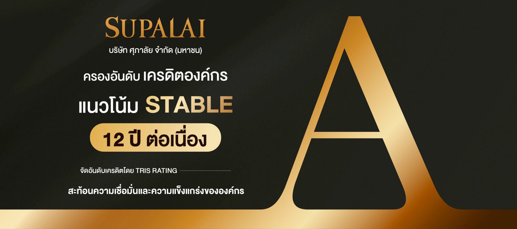 บริษัทฯ ยังคงเดินหน้าสร้างความเชื่อมั่นต่อเนื่องในตลาดอสังหาริมทรัพย์ ภายหลังได้รับการคงอันดับเครดิตองค์กรในระดับ A จากทริสเรทติ้ง ต่อเนื่องเป็นปีที่ 12 ซึ่งสะท้อนถึงผลการดำเนินงานที่แข็งแกร่ง ความสามารถในการทำกำไรที่ดี การบริหารจัดการทางการเงินที่มีประสิทธิภาพ และการดำเนินธุรกิจภายใต้หลักธรรมาภิบาลที่โปร่งใสและยั่งยืน ด้วยภาระหนี้สินทางการเงินที่อยู่ในระดับต่ำ สภาพคล่องที่บริหารจัดการได้ และสถานะทางการตลาดที่แข็งแกร่ง ทำให้บริษัทฯ จึงมีความพร้อมในการลงทุนทั้งในประเทศและต่างประเทศอย่างต่อเนื่อง โดยยังคงขยายพอร์ตโครงการอย่างสมดุลทั้งในกรุงเทพฯ ปริมณฑล และภูมิภาค เพื่อกระจายความเสี่ยงและสร้างรายได้อย่างมั่นคงในระยะยาว พร้อมพัฒนาโครงการคุณภาพที่ครอบคลุมทุกเซกเมนต์ ตั้งแต่บ้านเดี่ยว บ้านแฝด ทาวน์โฮม ไปจนถึงคอนโดมิเนียม เพื่อรองรับความต้องการของลูกค้าทุกกลุ่ม ทั้งนี้ อันดับเครดิตระดับ “A” แนวโน้มคงที่ ที่ได้รับ ถือเป็นการตอกย้ำความเชื่อมั่นของนักลงทุน สถาบันการเงิน และลูกค้าที่มีต่อศุภาลัย ในฐานะองค์กรที่มีศักยภาพในการสร้างผลการดำเนินงานที่มั่นคงสม่ำเสมอ และยึดมั่นในการดำเนินธุรกิจภายใต้หลัก ESG เพื่อสร้างการเติบโตอย่างยั่งยืนให้แก่ผู้ถือหุ้น ลูกค้า และสังคม ในระยะยาว