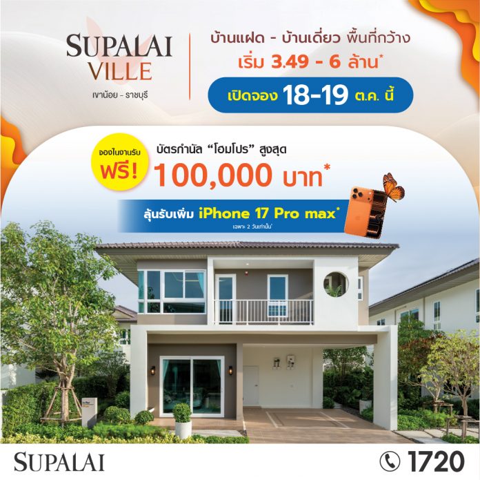 บริษัท ศุภาลัย จำกัด (มหาชน) เดินหน้าเปิดโครงการบ้านคุณภาพในทำเลศักยภาพ ใกล้ทุกความสะดวกของเมืองราชบุรี “ศุภาลัย วิลล์ เขาน้อย–ราชบุรี” บ้านเดี่ยวและบ้านแฝด ซีรีส์ใหม่ “Romantic Charm” สไตล์อบอุ่นผสานความโรแมนติก บนพื้นที่กว่า 39 ไร่ มูลค่าโครงการ 900 ล้านบาท พร้อมฟังก์ชันครบ 3–4 ห้องนอน 2–4 ห้องน้ำ ที่จอดรถ 2 คัน บนพื้นที่ใช้สอย 134–210 ตารางเมตร ในราคาเริ่มต้น 3.49–6 ล้านบาท* เตรียมพบกับงาน Pre-Sale 18–19 ตุลาคมนี้ จองภายในงานรับฟรี! บัตรของขวัญโฮมโปร มูลค่าสูงสุด 100,000 บาท* และ ลุ้นรับ iPhone 17 Pro Max 256 GB* เฉพาะ 2 วันเท่านั้น (*เงื่อนไขเป็นไปตามที่บริษัทฯ กำหนด)