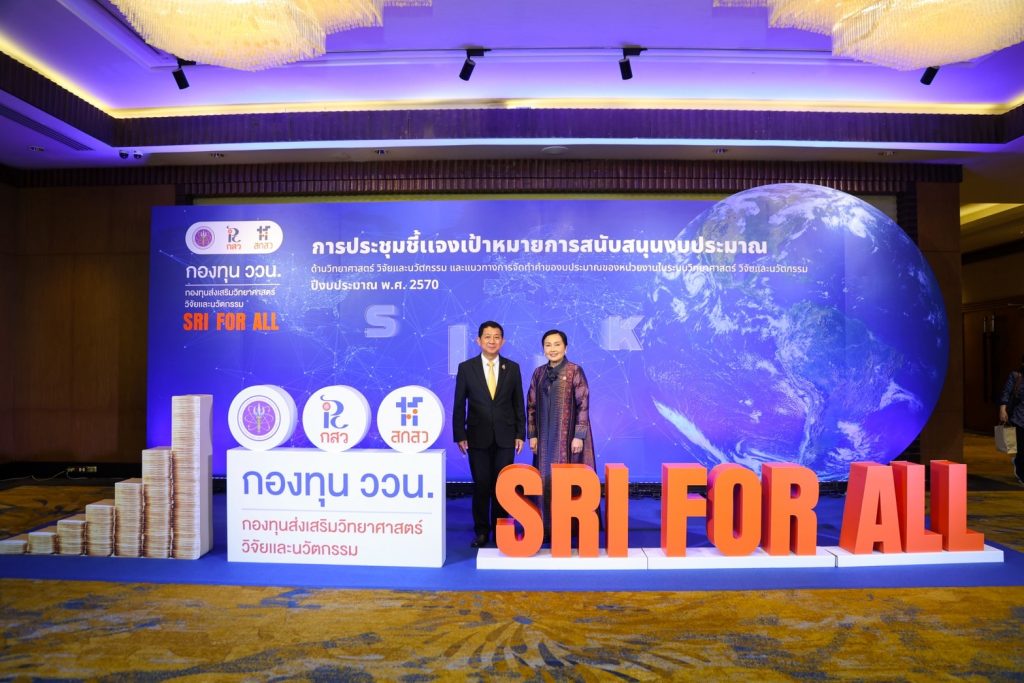 สกสว. มุ่งขับเคลื่อนแนวคิด “Efficiency Growth” เพื่อสร้างการเติบโตบนฐานผลิตภาพ ยกระดับคุณภาพชีวิตประชาชน และเสริมศักยภาพการแข่งขันของประเทศในเวทีโลกด้วยแผนด้าน ววน. ที่มุ่งเน้นการพัฒนาเศรษฐกิจไทยด้วยเศรษฐกิจสร้างคุณค่าและเศรษฐกิจสร้างสรรค์ให้มีความสามารถในการแข่งขันและพึ่งพาตนเองได้อย่างยั่งยืน พร้อมสู่อนาคตโดยใช้ ววน. การยกระดับสังคมและสิ่งแวดล้อมให้มีการพัฒนาอย่างยั่งยืน การพัฒนาวิทยาศาสตร์ เทคโนโลยี การวิจัยและนวััตกรรมระดับขั้นแนวหน้าที่ก้าวหน้าล้ำยุค และการพัฒนากำลังคนและสถาบันด้านวิทยาศาสตร์ วิจัยและนวัตกรรม ให้เป็นฐานการขับเคลื่อนการพัฒนาเศรษฐกิจและสังคมของประเทศแบบก้าวกระโดดและอย่างยั่งยืน รวมทั้งผ่านการจัดสรรงบประมาณให้แก่หน่วยรับงบประมาณอย่างเหมาะสมและมีธรรมาภิบาล ภายใต้วิสัยทัศน์ “SRI for All – Empowering all SRI organizations to achieve more and leap Thailand forward”