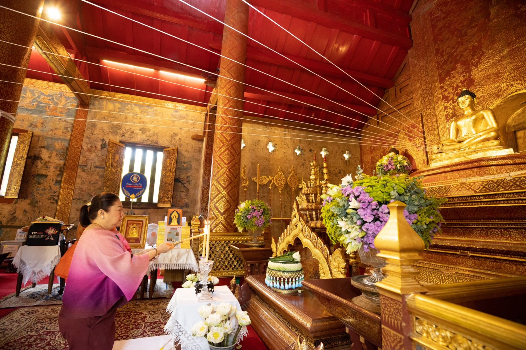 โดยนิมนต์พระเทพสิงหวราจารย์ รองเจ้าคณะจังหวัดเชียงใหม่ เจ้าอาวาสวัดพระสิงห์วรมหาวิหาร มาเป็นประธานสงฆ์ พร้อมด้วยพระภิกษุสงฆ์ จำนวน 9 รูป เจริญพระพุทธมนต์ ถวายสังฆทาน หลังจากนั้นจึงได้ร่วมกันถวายจตุปัจจัยไทยธรรม ปัจจัยบำรุงศาสนสถาน ถวายภัตตาหารเพลแด่พระภิกษุสามเณรภายในวัดทุกรูป ณ วัดพระสิงห์วรมหาวิหาร