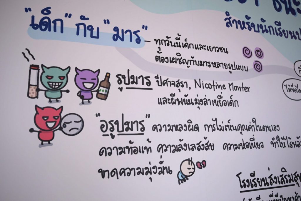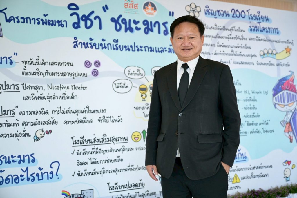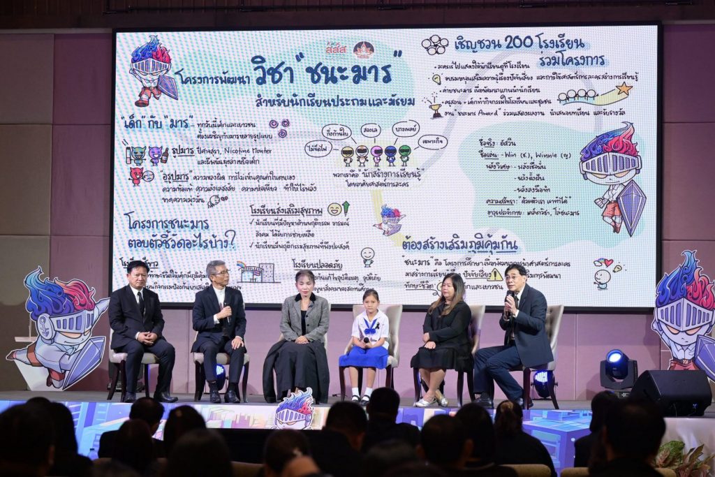 นพ.พงศ์เทพ วงศ์วัชรไพบูลย์ ผู้จัดการกองทุน สสส. กล่าวว่า ขณะนี้มีเด็กและเยาวชนเปรียบเหมือนมีมารอยู่รอบตัว จากการถูกชักชวนให้เข้าไปเกี่ยวข้องกับปัจจัยเสี่ยง ทั้งบุหรี่ไฟฟ้า พนันออนไลน์ และเครื่องดื่มแอลกอฮอล์ ในปี 2567 มีเยาวชนสูบบุหรี่ไฟฟ้าเพิ่มขึ้นถึง 5.3 เท่า ส่วนหนึ่งมาจากกลลุทธ์การตลาดแบบล่าเหยื่อ ที่ออกแบบผลิตภัณฑ์ที่ล่อใจเด็ก เช่น เป็นตุ๊กตา “ทอยพอด” หรือล่าสุดก็ทำมาในรูปลักษณ์เหมือนยาดม ที่เรียกกันว่า “พอดจมูก” เด็ก ๆ หารู้ไม่ว่า ในบุหรี่ไฟฟ้า 1 แท่ง มีนิโคตินเข้มข้นและอันตรายมากเทียบเท่าการสูบบุหรี่ 20 มวน ส่วนการดื่มเครื่องดื่มแอลกอฮอล์ของเด็กเยาวชน พบว่า 33.06% มีการดื่มแล้วขับ นำมาสู่การเกิดอุบัติเหตุและเสียชีวิตก่อนวัยอันควร ขณะที่พนันออนไลน์ก็แพร่ระบาดมาถึงตัวเด็ก ผลสำรวจ 2 ปีก่อนหน้านี้ พบว่า 32.3% ของเด็กเยาวชนคนรุ่นใหม่เล่นการพนันออนไลน์ เฉลี่ยคนละ 1,633 บาทต่อเดือน คิดเป็นเงินที่ถูกล่อลวงถึง 58,675 ล้านบาท