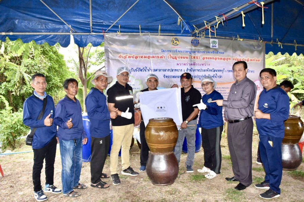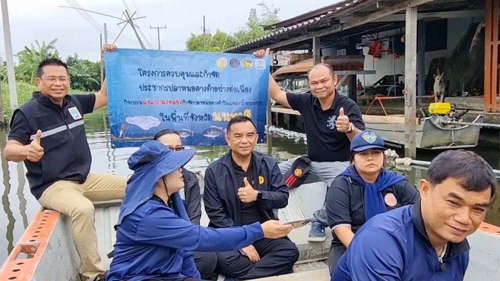 สำนักงานประมงจังหวัดนนทบุรี ร่วมกับ กลุ่มอนุรักษ์สัตว์น้ำตำบลศาลากลางปลายบาง เดินหน้า “ลงแขกลงคลอง” กำจัดปลาหมอคางดำ พร้อมแปรรูปทำน้ำปลา เพิ่มคุณค่าและสร้างประโยชน์แก่ชุมชน