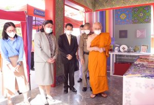 สมเด็จพระอริยวงศาคตญาณ สมเด็จพระสังฆราช สกลมหาสังฆปริณายก เสด็จลง ณ พระวิหาร วัดราชบพิธสถิตมหาสีมาราม เขตพระนคร กรุงเทพมหานคร ประทานพระวโรกาสให้ ศ.ดร.นพ.สิริฤกษ์ ทรงศิวิไล ปลัดกระทรวงการอุดมศึกษา วิทยาศาสตร์ วิจัยและนวัตกรรม (อว.) ดร.วิภารัตน์ ดีอ่อง ผู้อำนวยการสำนักงานการวิจัยแห่งชาติ (วช.) ดร.ชุติมา เอี่ยมโชติชวลิต ผู้ว่าการสถาบันวิจัยวิทยาศาสตร์และเทคโนโลยีแห่งประเทศไทย (วว.) ดร.น้ำฝน ไล่ศัตรูไกล คณะทีมวิจัยมหาวิทยาลัยศิลปากรและบริษัทเบเยอร์ เฝ้ากราบสักการะและถวาย “ชุดสีของกระเบื้องวัดราชบพิธสถิตมหาสีมาราม” ผลงานศิลปะประยุกต์ และต้นแบบผลิตภัณฑ์จากชุดสีของกระเบื้องวัดราชบพิธฯ